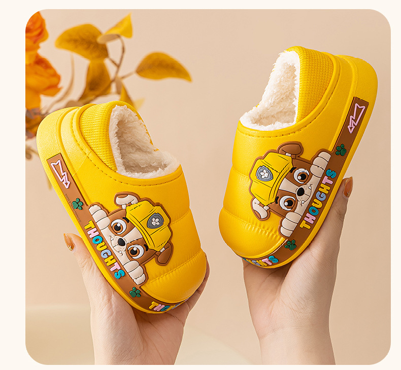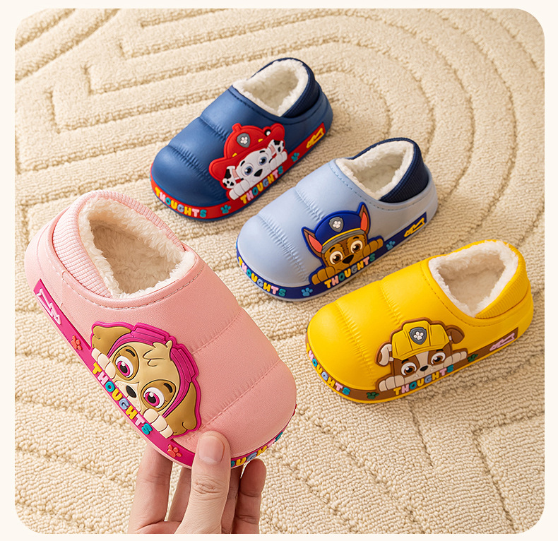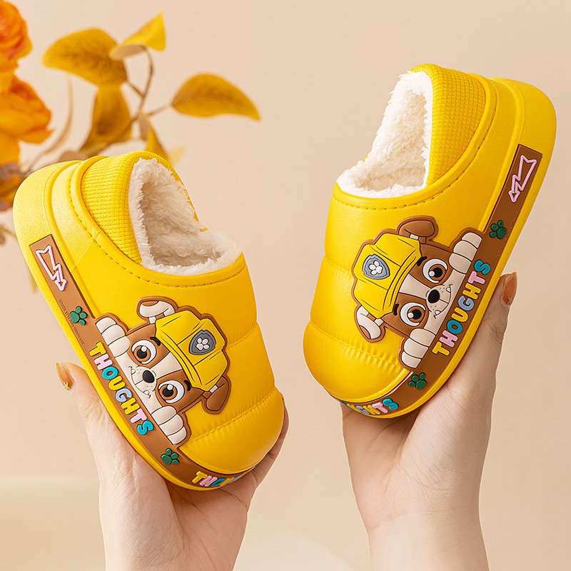 왕 왕 팀 어린이 면화 신발 소년과 소녀 가을과 겨울 방수 미끄럼 방지 면화 슬리퍼 아기 마오 마오 슬리퍼는 외부에서 착용 할 수 있습니다스토어 가기