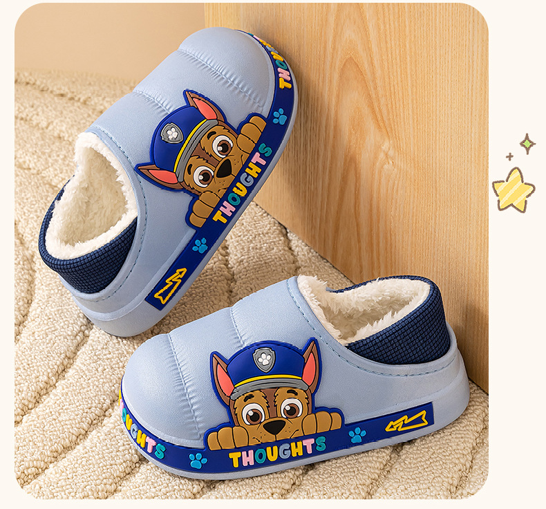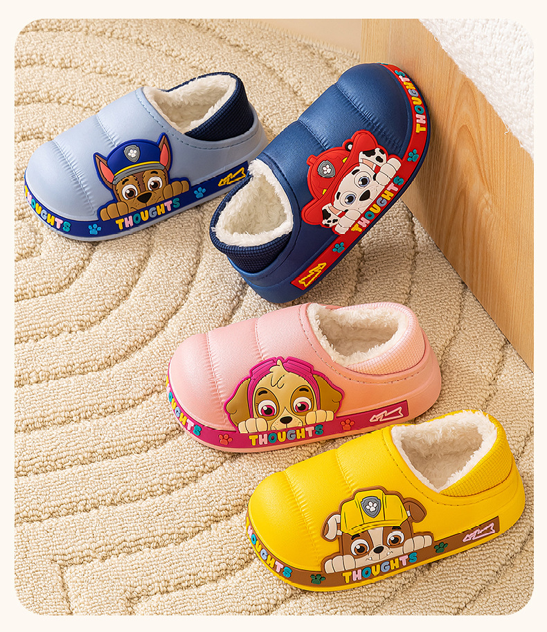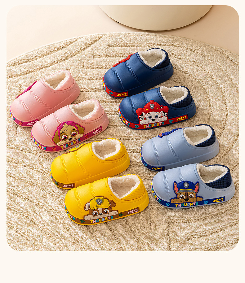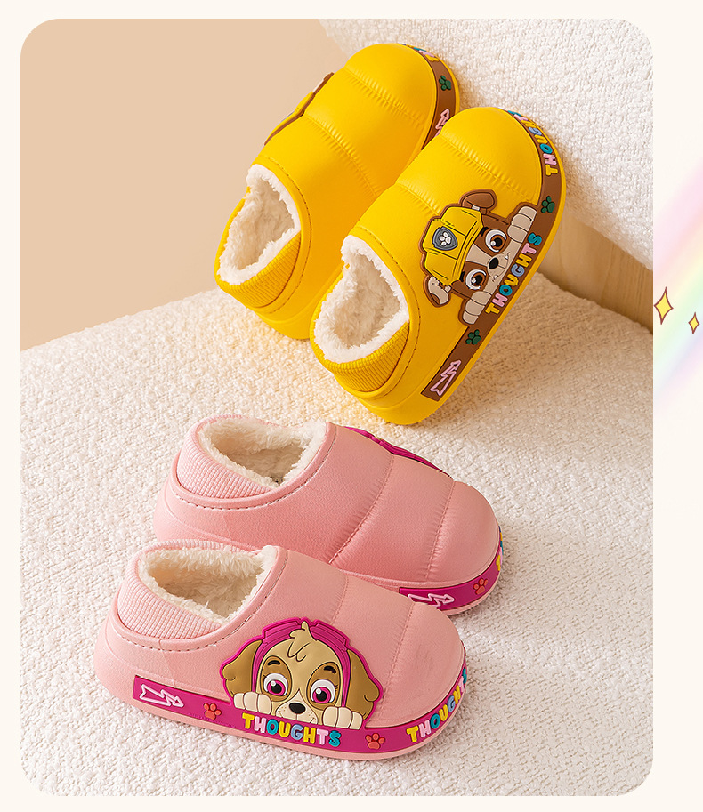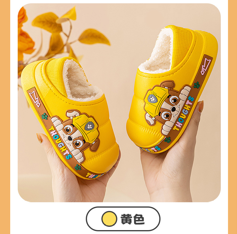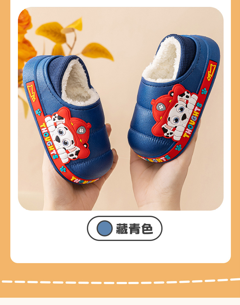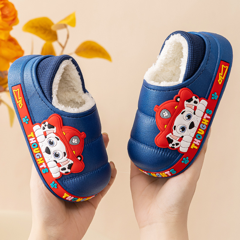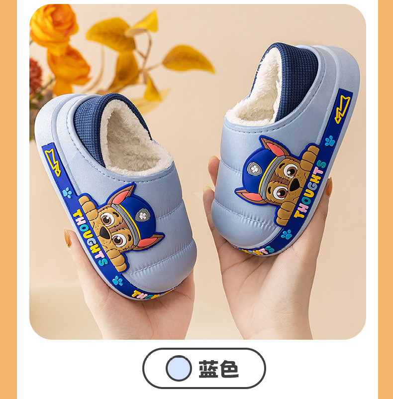 왕 왕 팀 어린이 면화 신발 소년과 소녀 가을과 겨울 방수 미끄럼 방지 면화 슬리퍼 아기 마오 마오 슬리퍼는 외부에서 착용 할 수 있습니다
