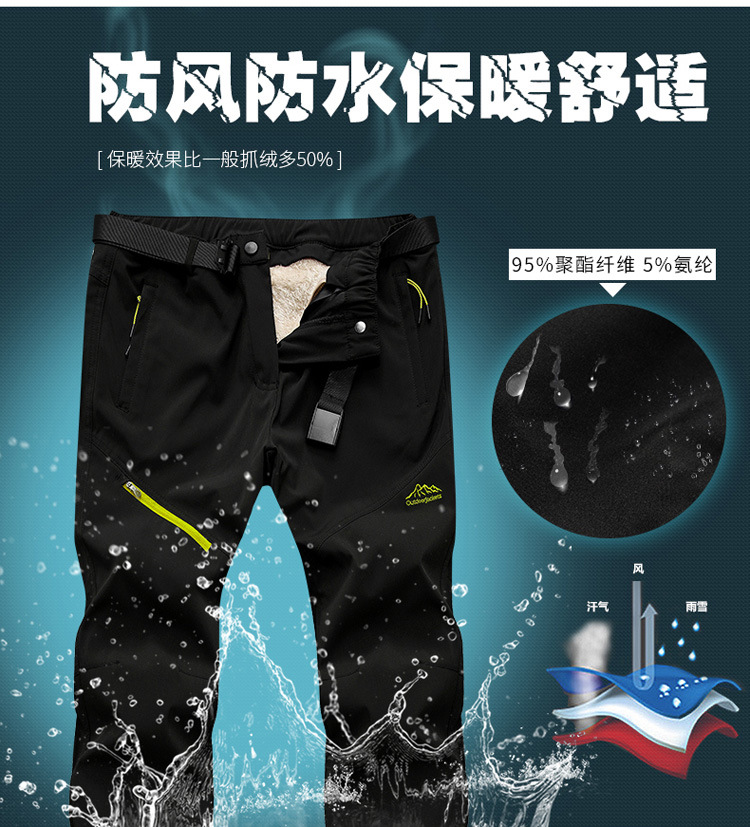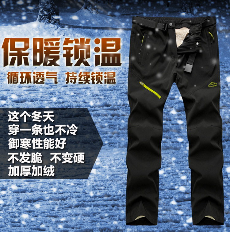 남자의 방풍 방수 소프트 쉘 바지 여자의 야외 하이킹 등산 및 스키 바지 기모 두꺼운 따뜻한 작업 바지