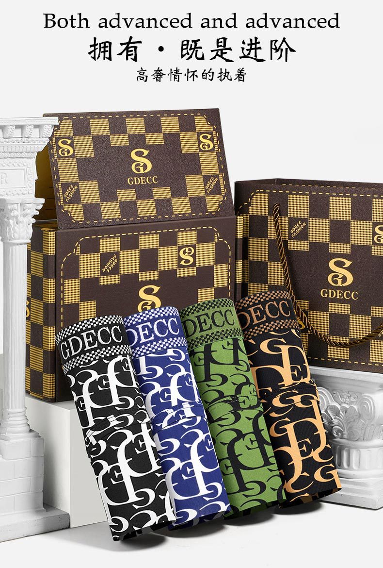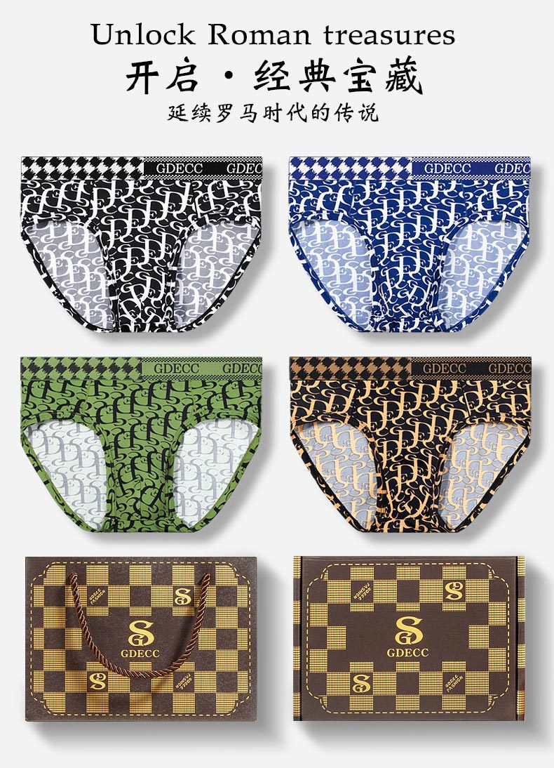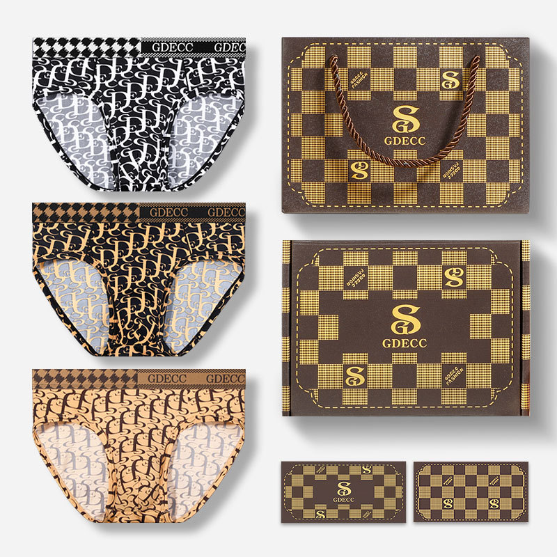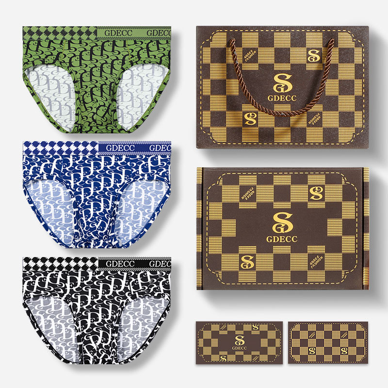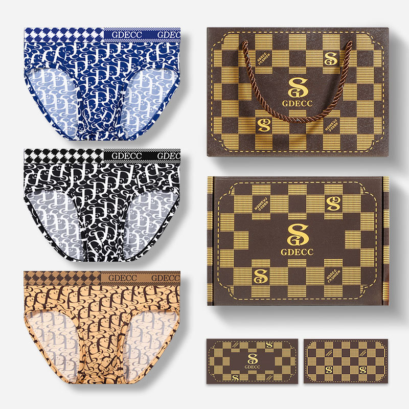 정품 GDECC 남성 팬티 여름 얇은 얼음 실크 성격 인쇄 통기성 속옷 3 선물 상자스토어 가기