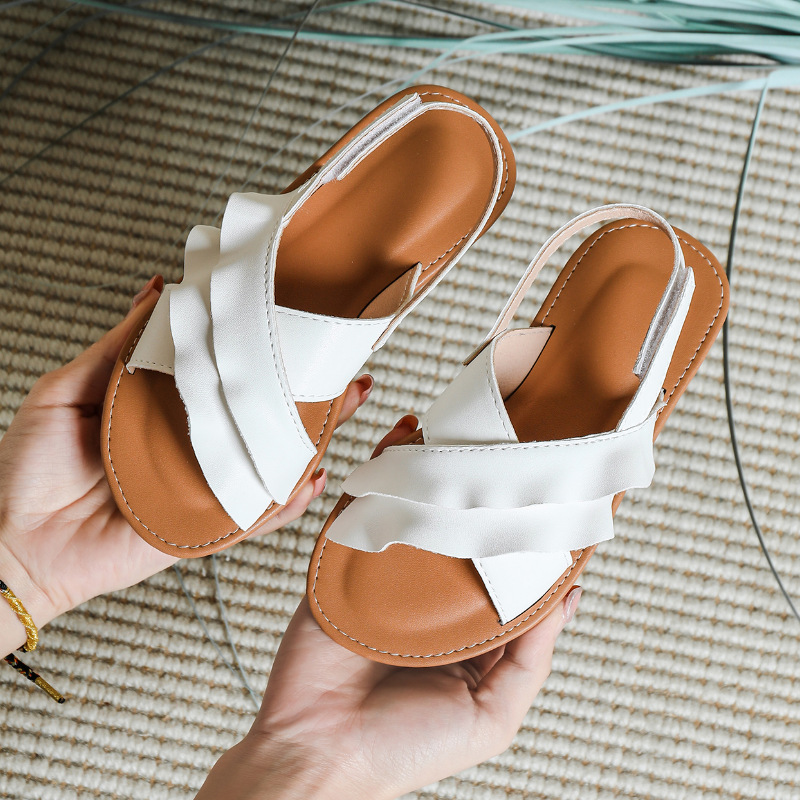 크로스 보더 어린이 신발 2023 여름 어린이 부드러운 밑창 공주 신발 여아 큰 어린이 오픈 토 모든 매치 리어 레이스 비치 신발스토어 가기