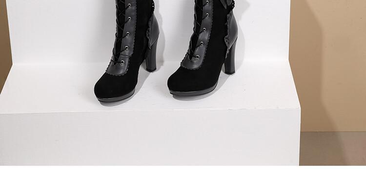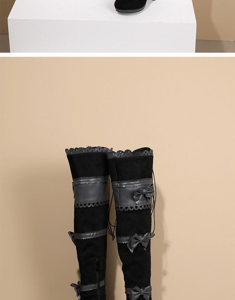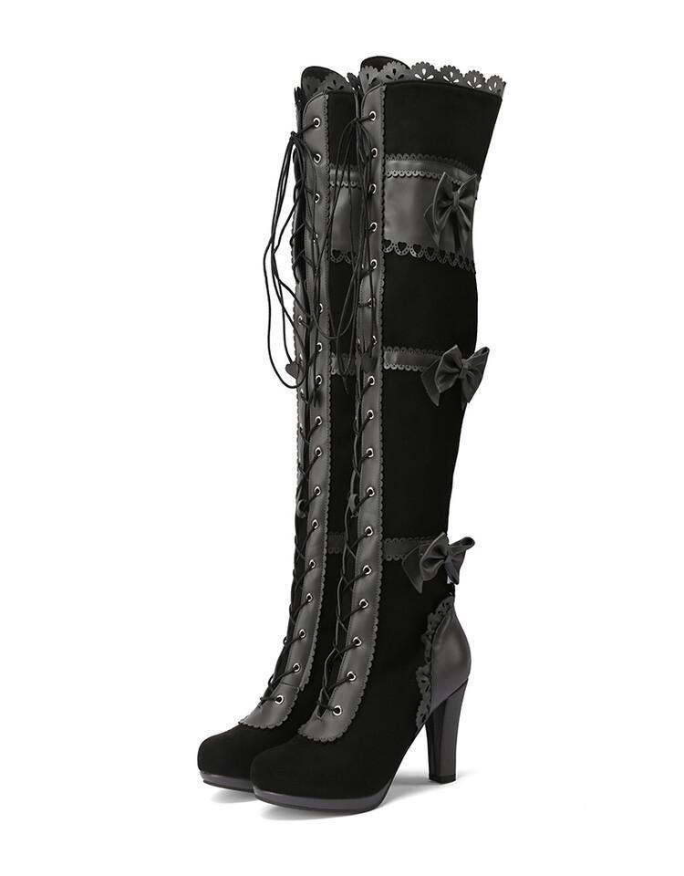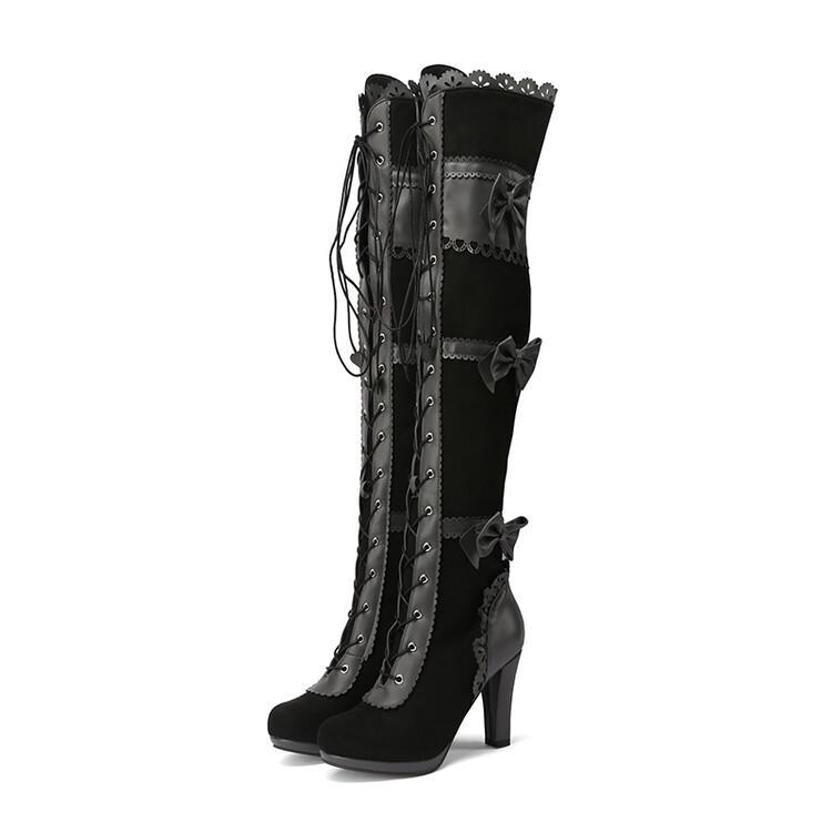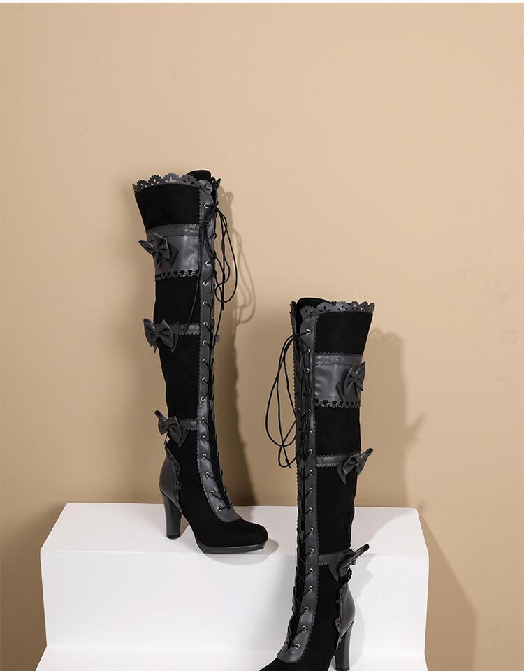 오버 더 니 부츠 여자의 달콤한 로리타 스티치 활 레이스 업 두꺼운 하이힐 대외 무역 플러스 사이즈 섹시한 기사 부츠 여성