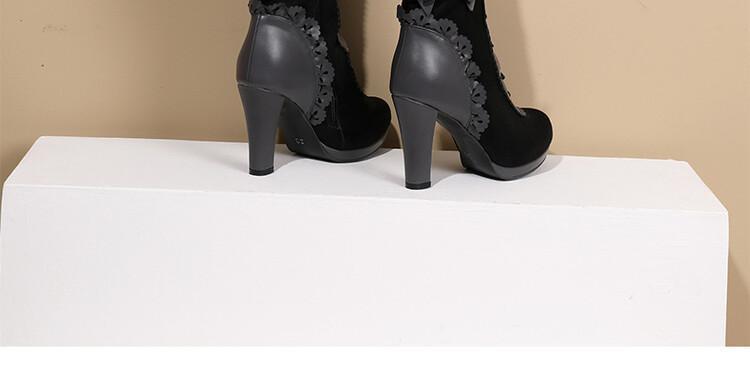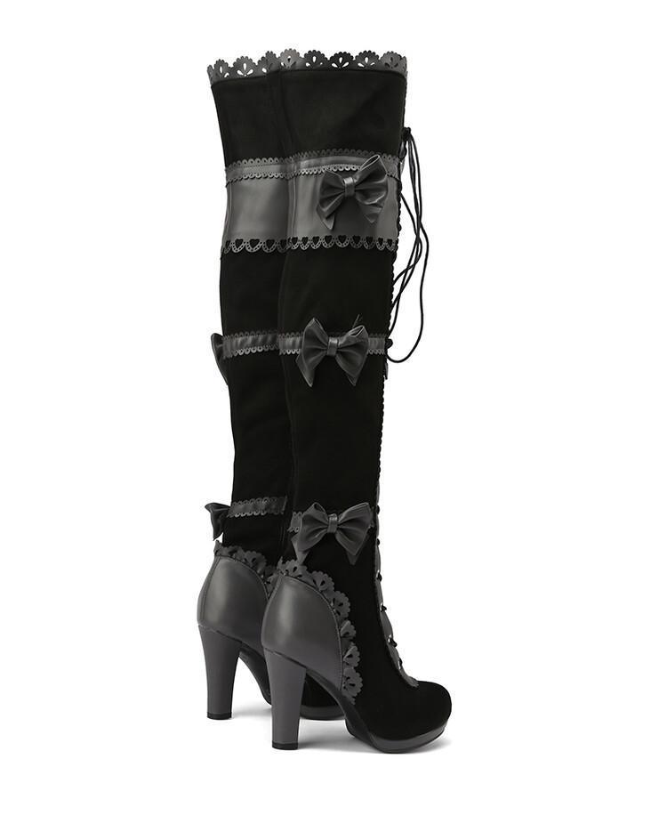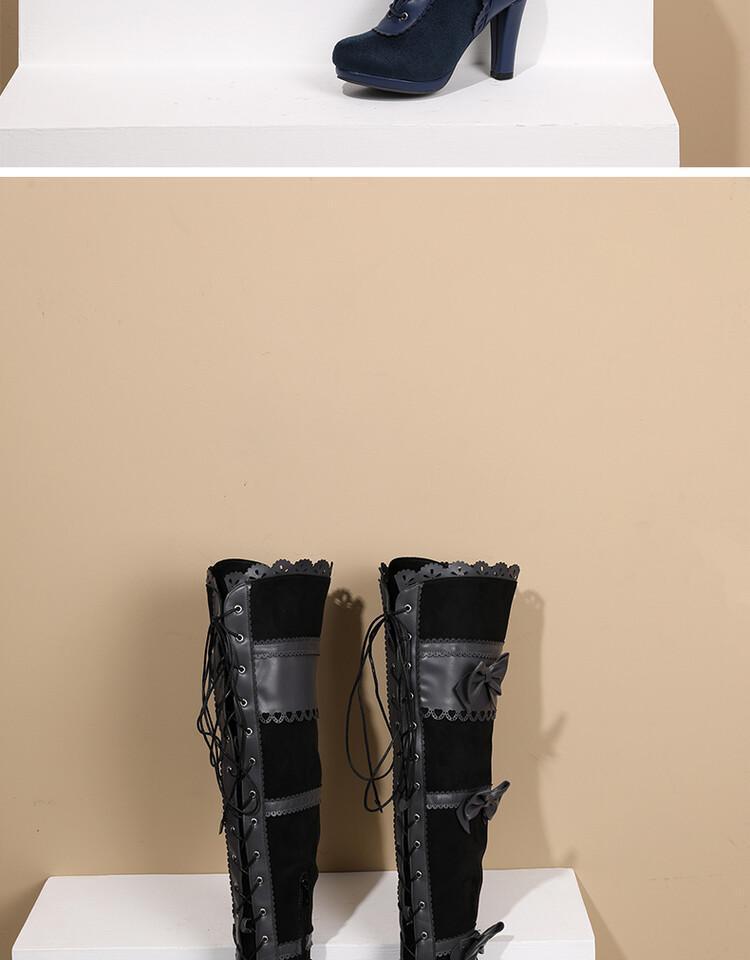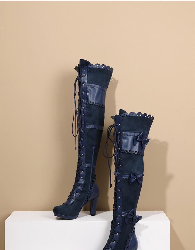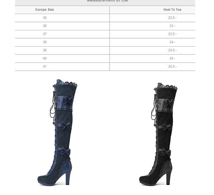 오버 더 니 부츠 여자의 달콤한 로리타 스티치 활 레이스 업 두꺼운 하이힐 대외 무역 플러스 사이즈 섹시한 기사 부츠 여성스토어 가기