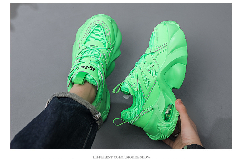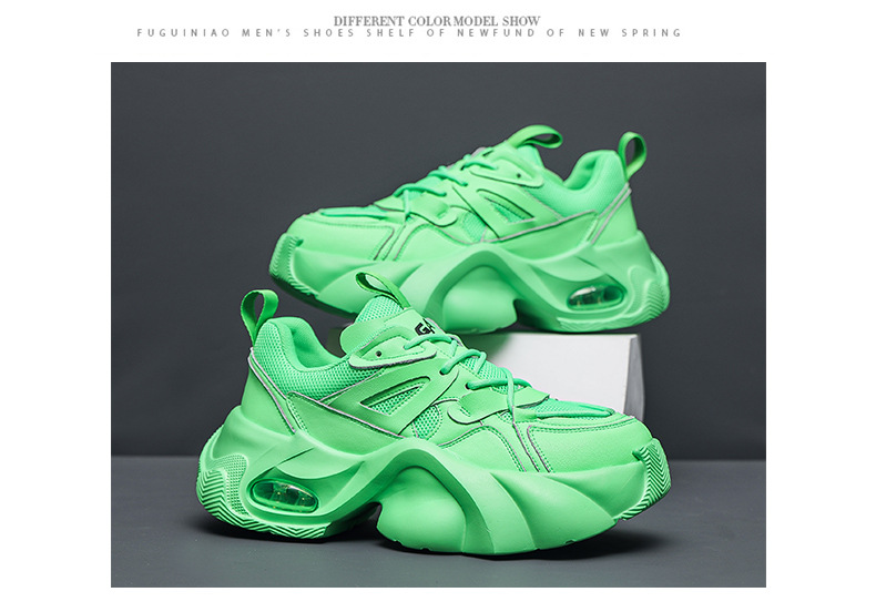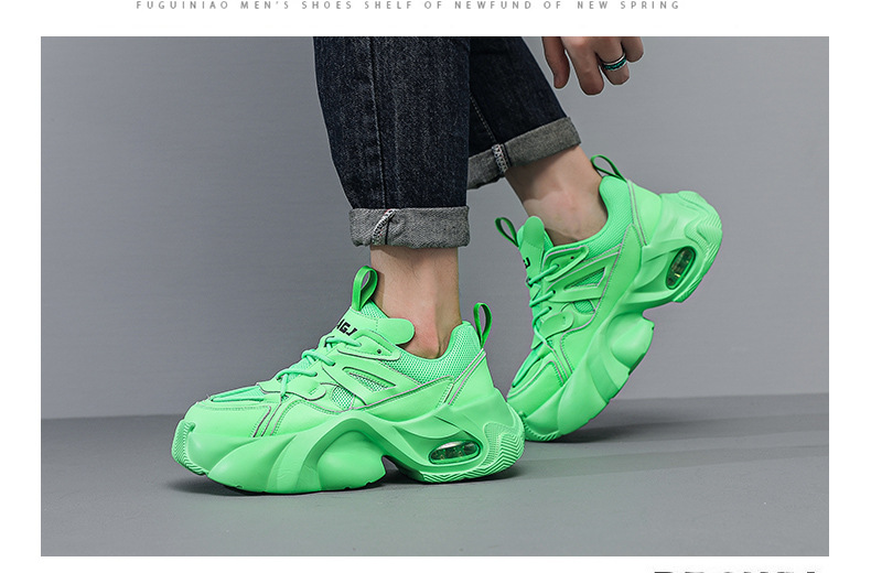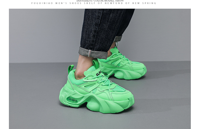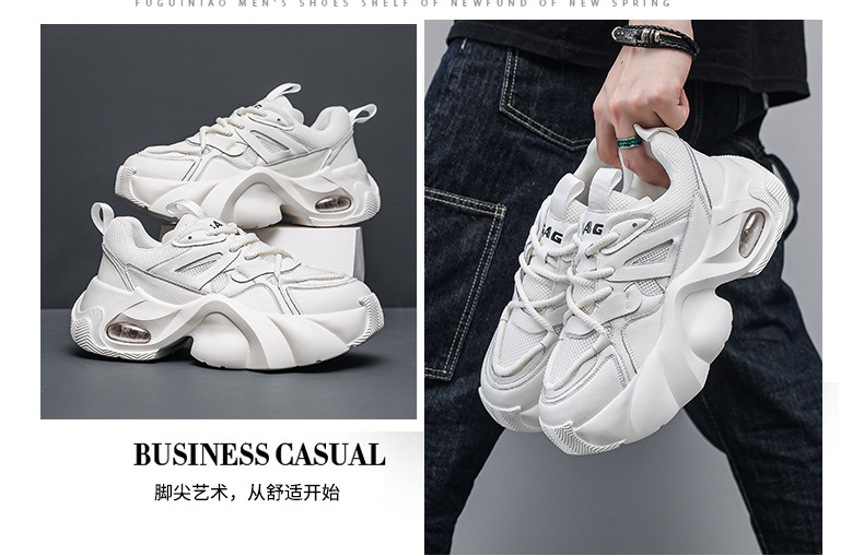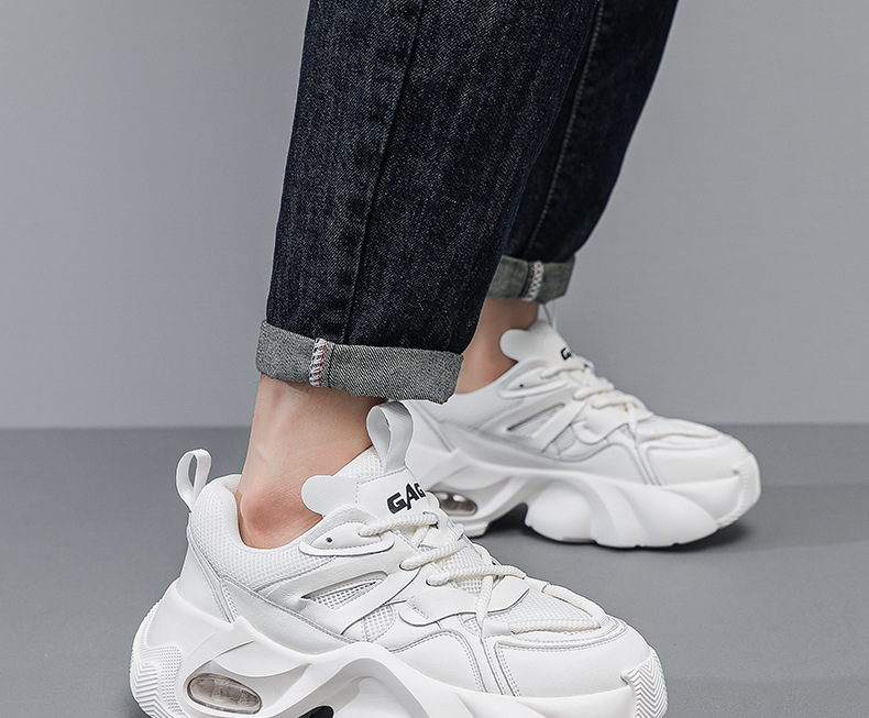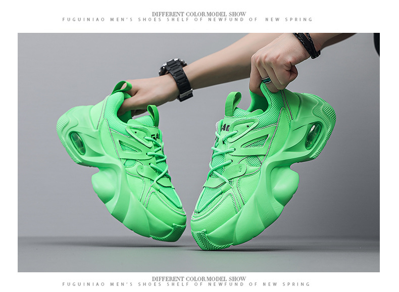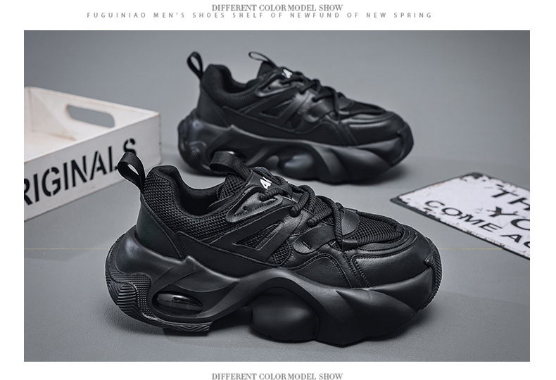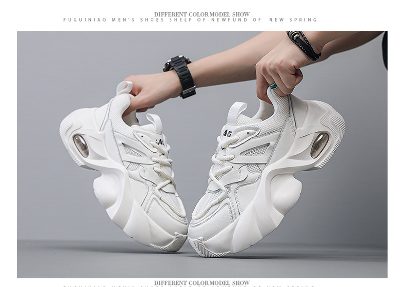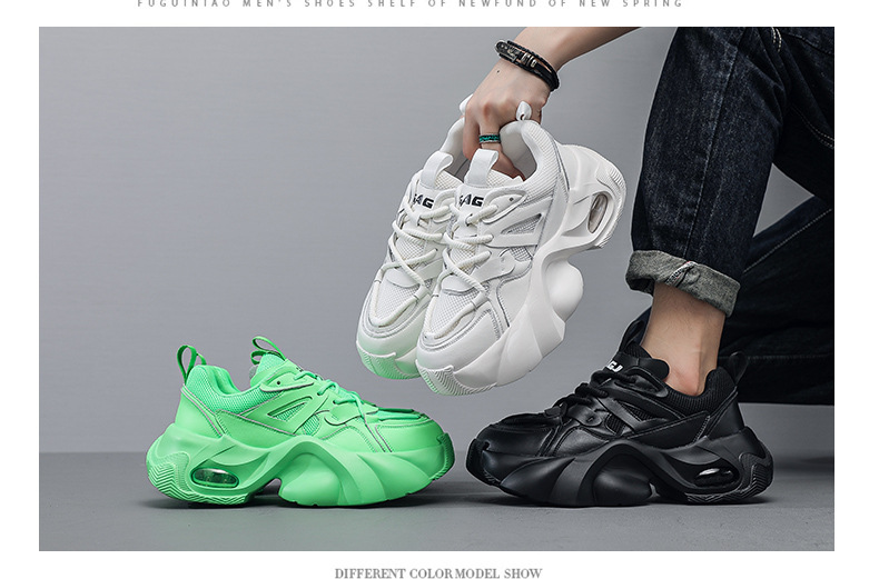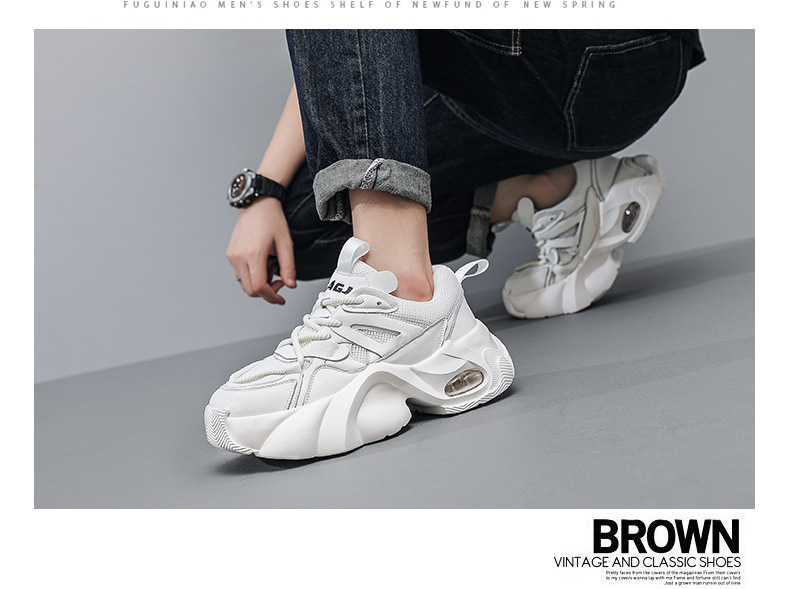 남성용 키높이 빵굽 신발 봄 신상 오토바이 스타일 아빠 신발 두꺼운 밑창 운동화 메쉬 캐주얼 신발 도매스토어 가기
