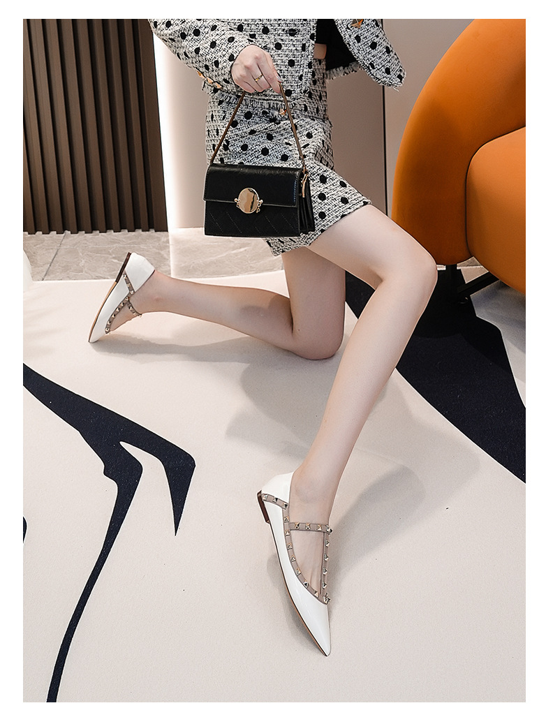 2025 봄 여름 신상 특허 가죽 스트랩 리벳 플랫 슈즈 포인티드 토 펌프스 소프트 소프트 바닥 V 여성용 신발