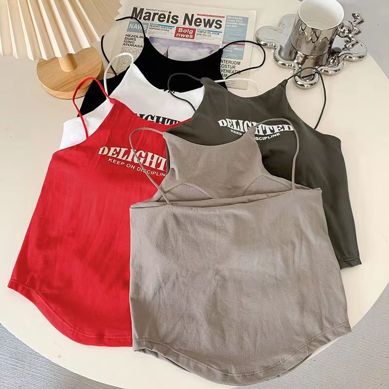 스타일 섹시한 스파이스 걸 순수한 욕망 얇은 어깨 스트랩 캐미솔 가슴 패드베이스가있는 여성용 이너웨어 뷰티 백 속옷 겉옷 탑
