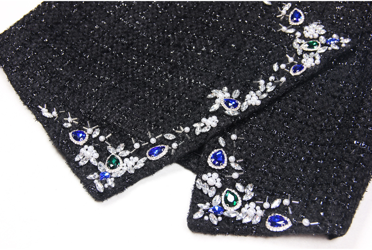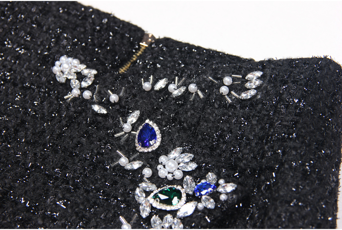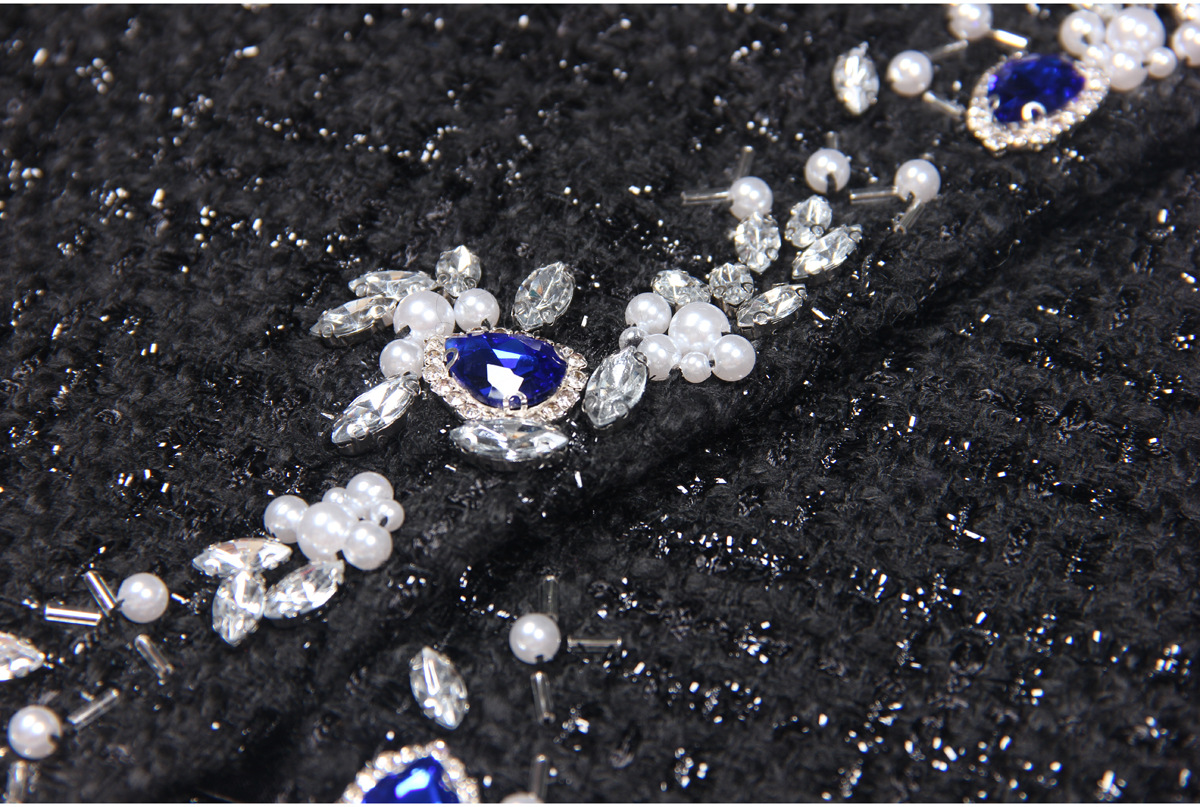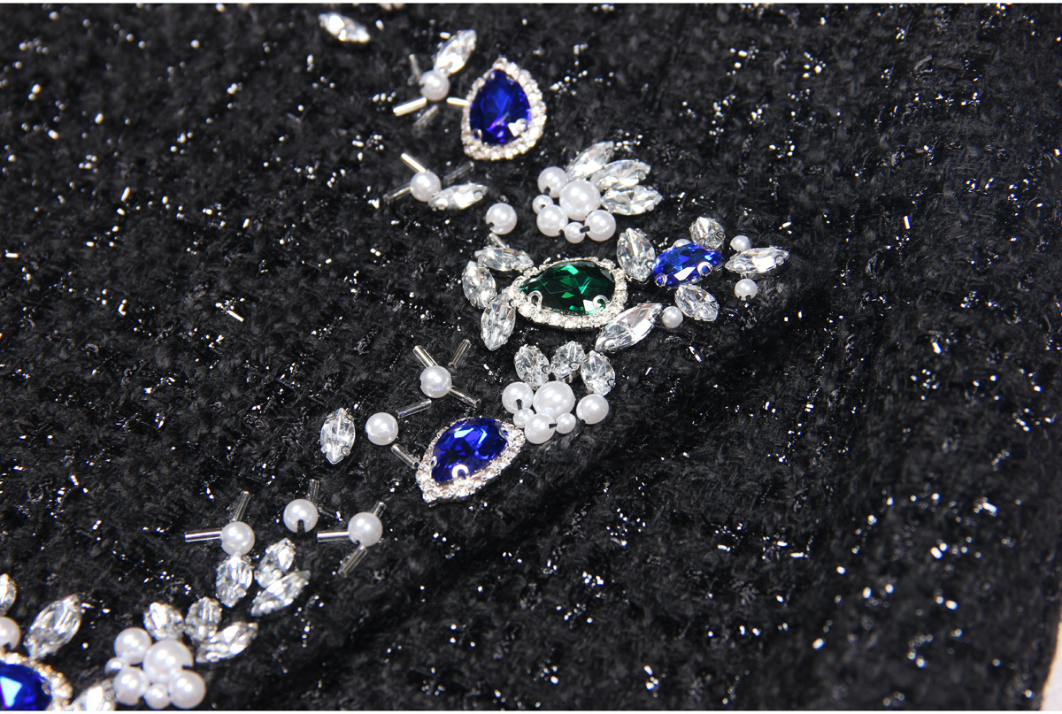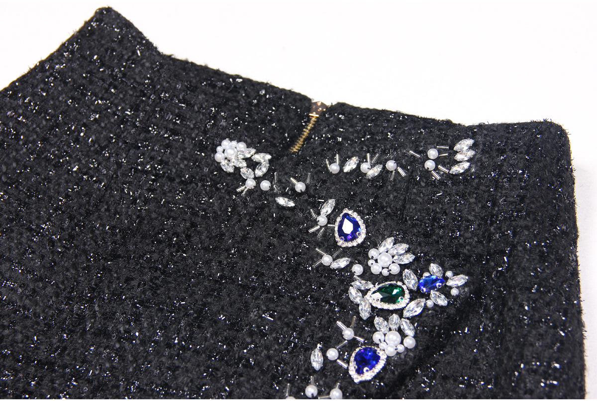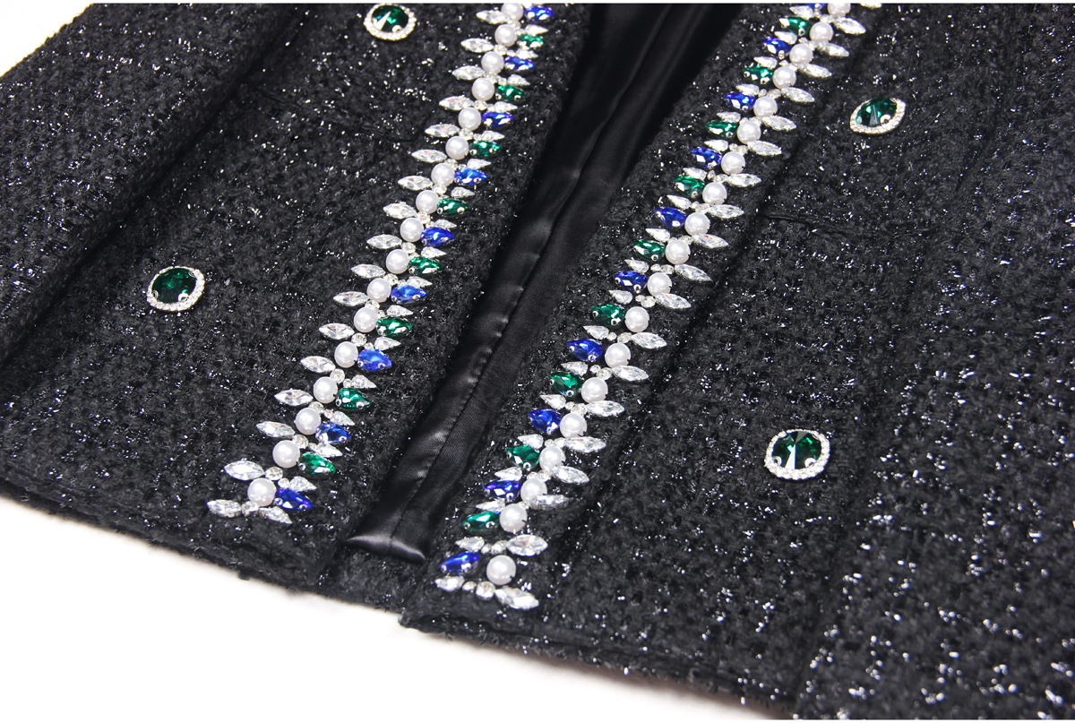 2025년 봄/가을 신상 유럽 및 미국 여성 패션 고급 품질 중공예 비즈 장식 재킷+스커트 세트스토어 가기
