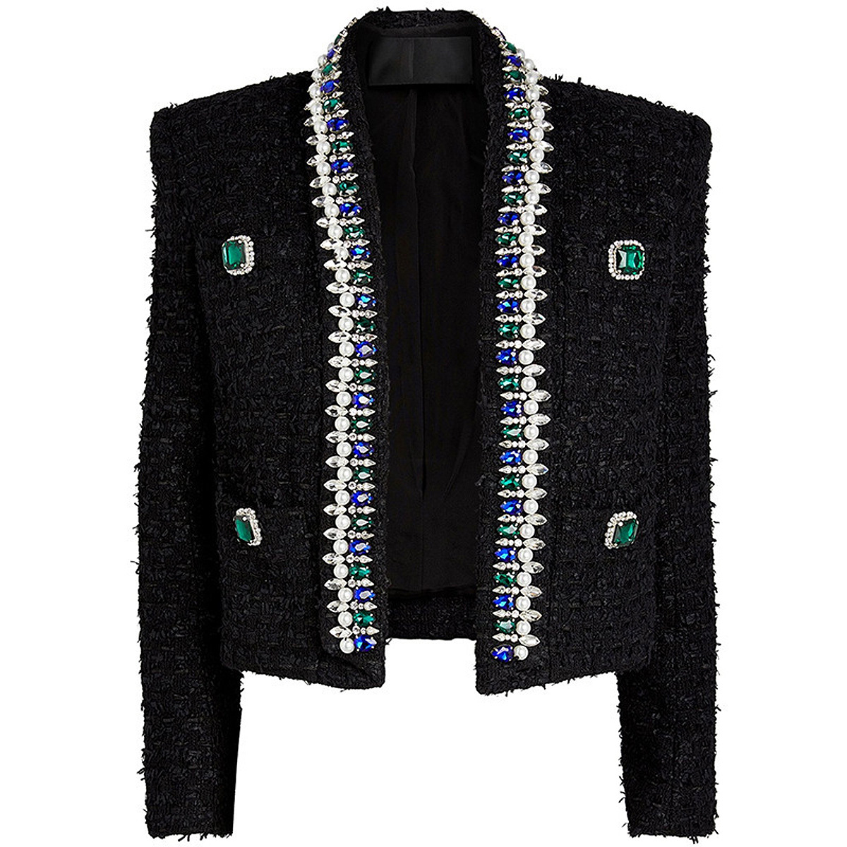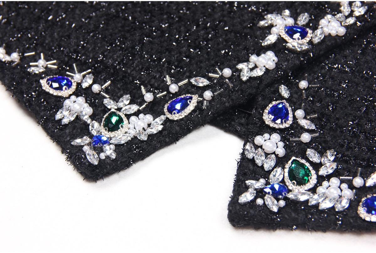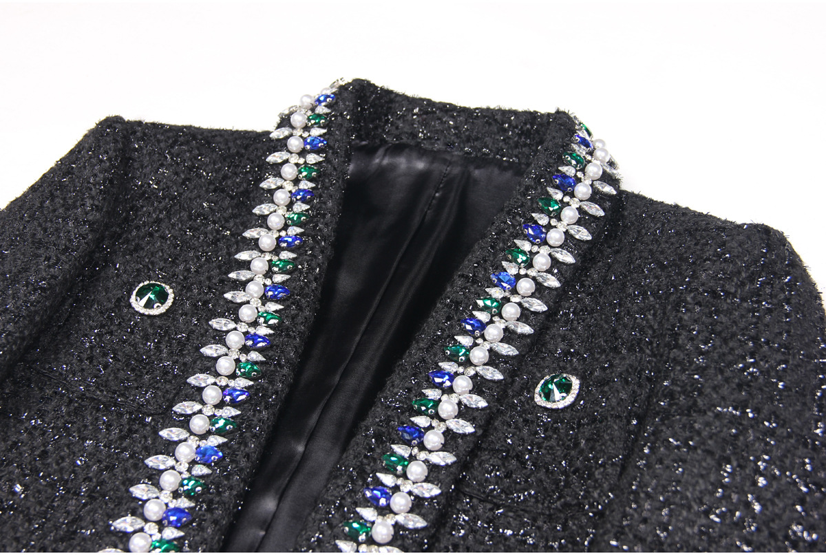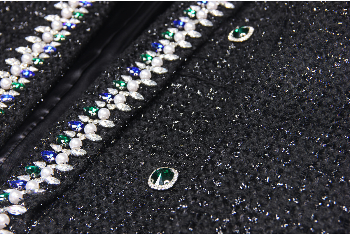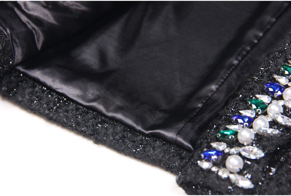 2025년 봄/가을 신상 유럽 및 미국 여성 패션 고급 품질 중공예 비즈 장식 재킷+스커트 세트