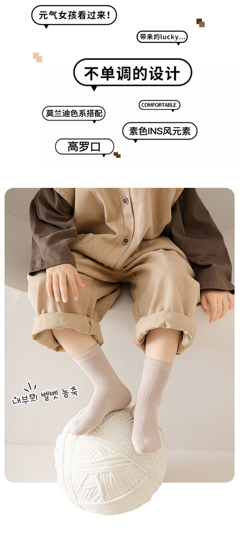뼈없는 감금 양말 아동용 양말 봄과 가을면 양말 도파민 컬러 남성과 여성 아기 중간 종아리 스포츠 양말 단색 올 매칭스토어 가기