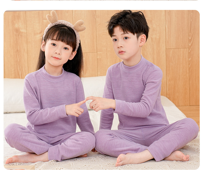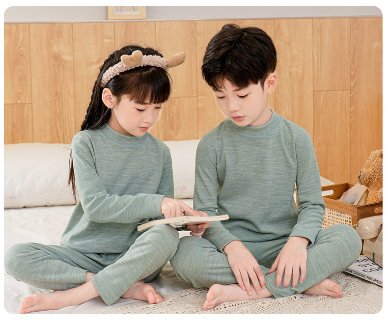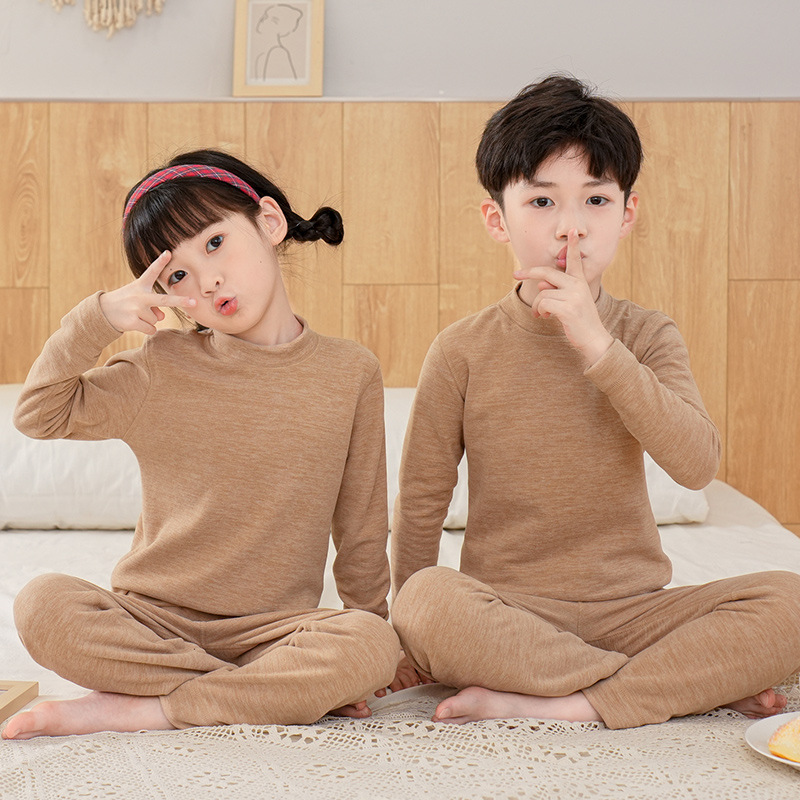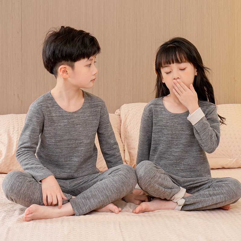 AS 소년과 소녀 크루넥 미드 칼라 가정 옷 어린이 가을 옷과 바지 따뜻한 세트 울 실크 속옷 세트스토어 가기