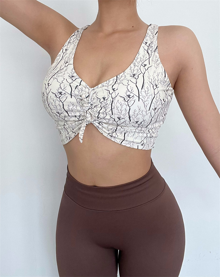 데이지 스트랩 주름 요가 섹시 필라테스 브라 속건 졸라매는 끈 피트니스 조끼 속옷 꽃 1284