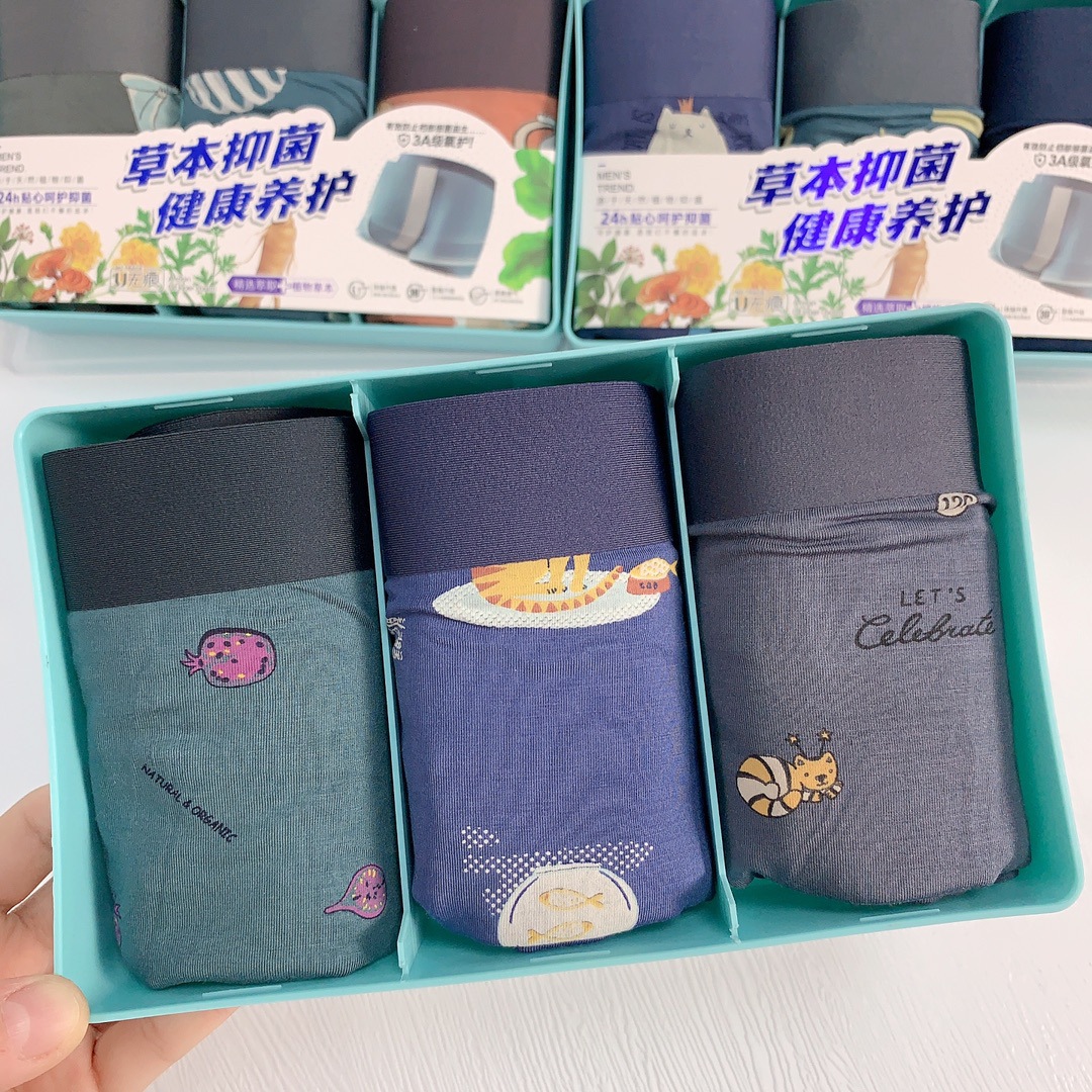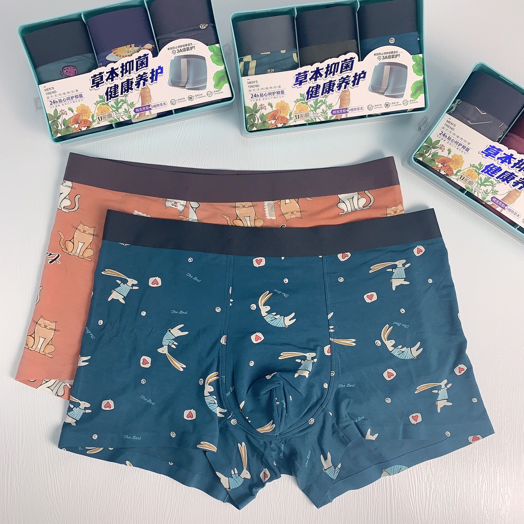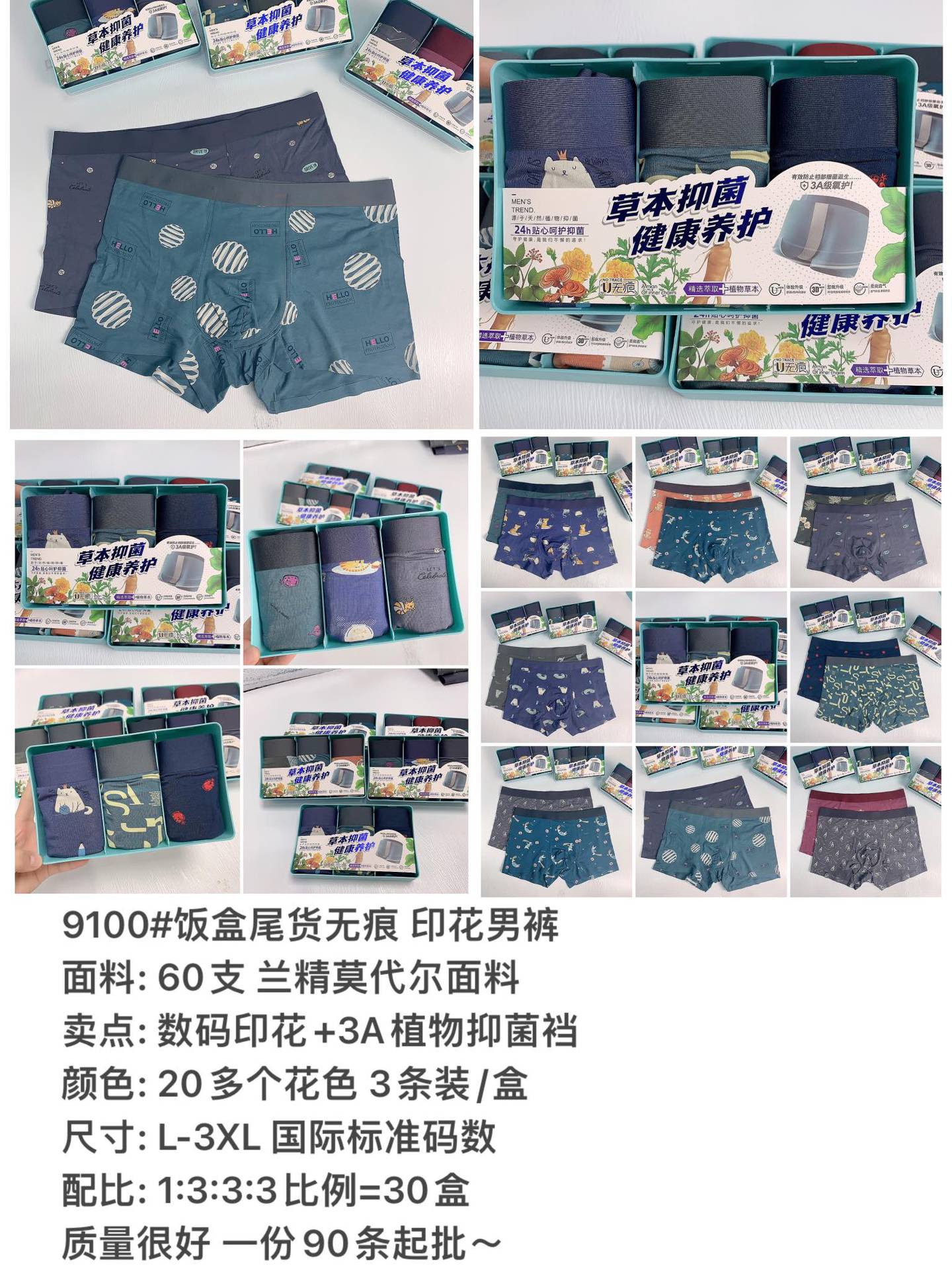9100 도시락 항균 남성 속옷 고급 60 Lanjing 모달 복서 인쇄 추적 없음 복서스토어 가기