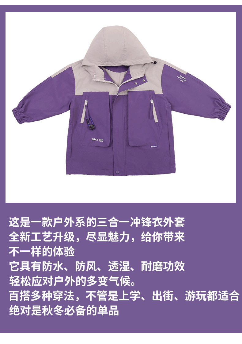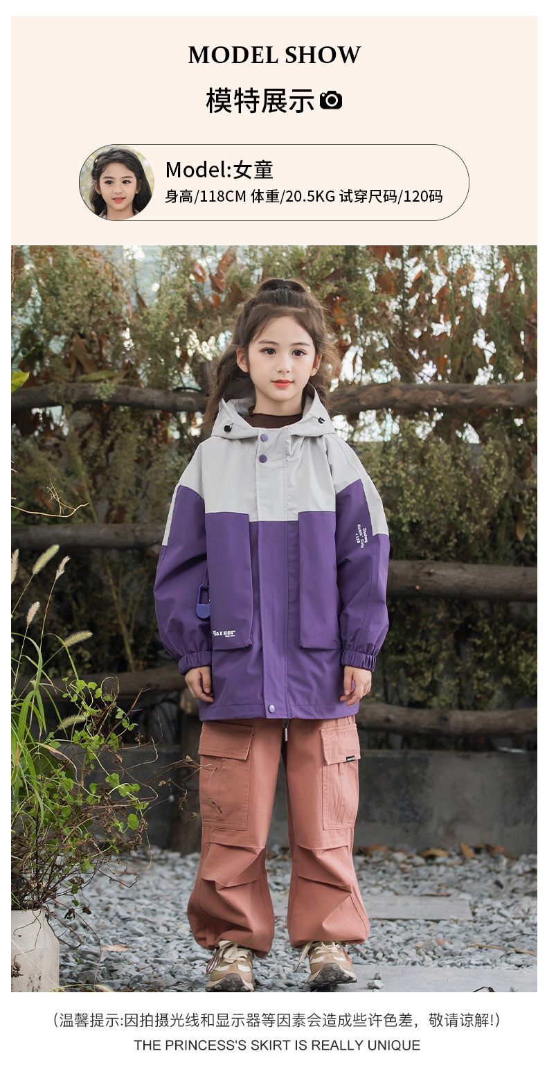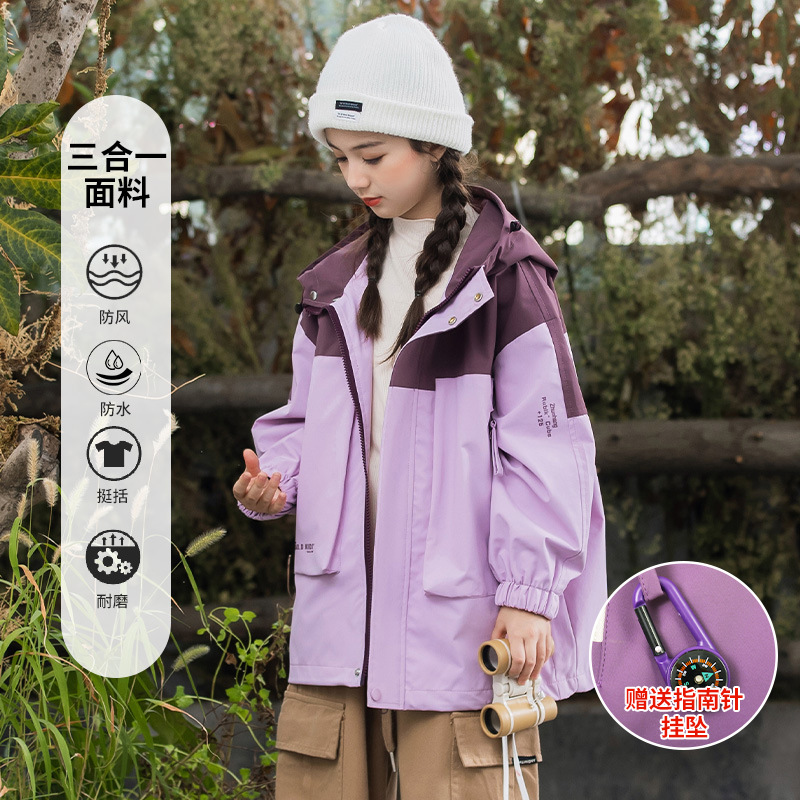 女童冲锋衣外套2024春秋装新款三防风防水户外登山服儿童外套秋装