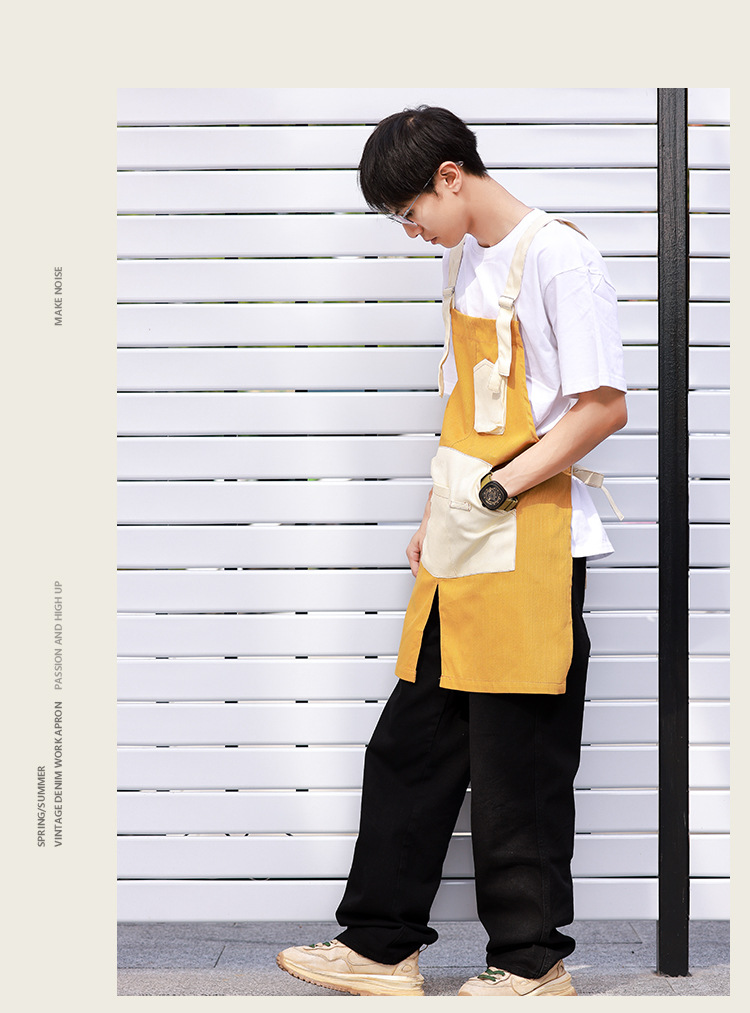 바리 스타 앞치마 로고 인쇄 케이터링 특별 우유 차 가게 이발사 매니큐어 가게 웨이터 작업복 캔버스 바지스토어 가기