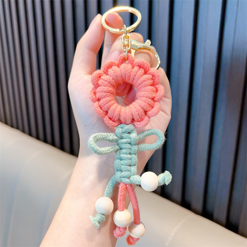 Woan 작은 꽃 술 수제 짠 열쇠 고리 펜던트 보헤미안 코튼 로프 키 백 펜던트 도매