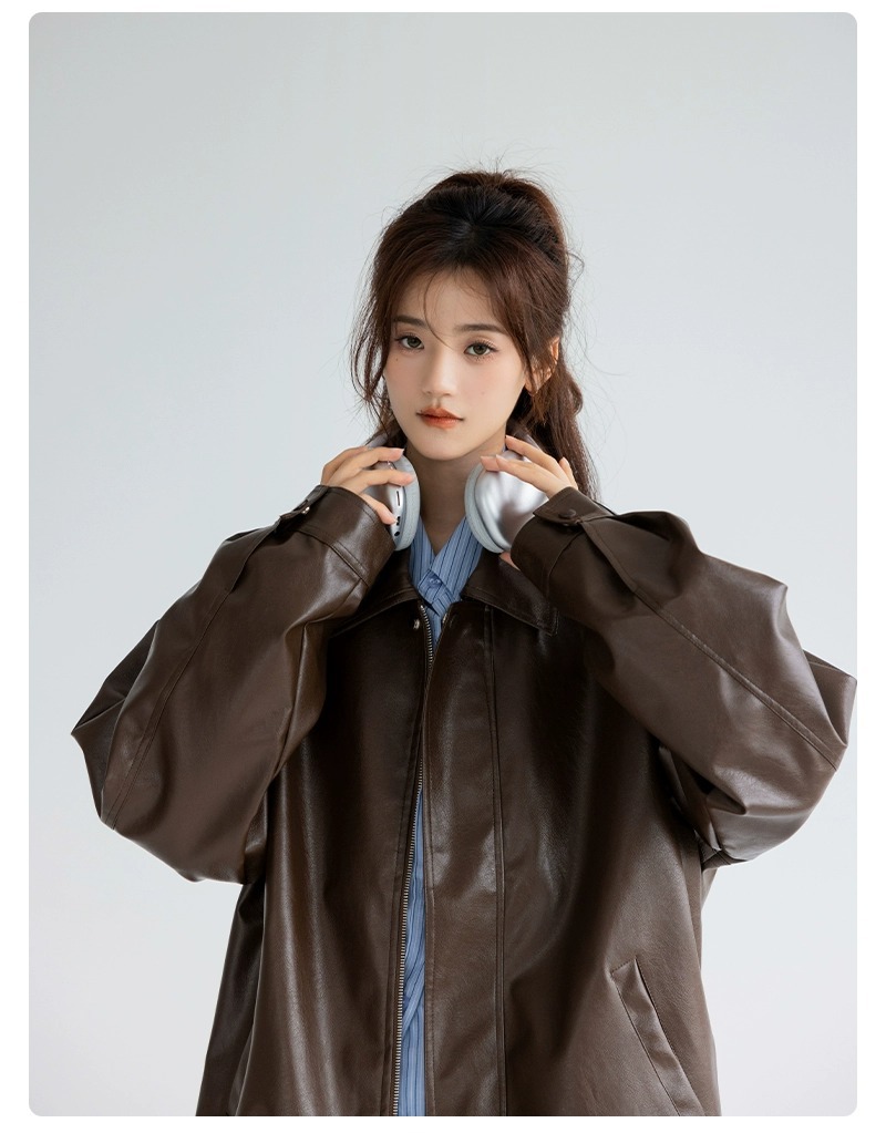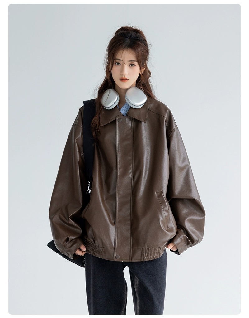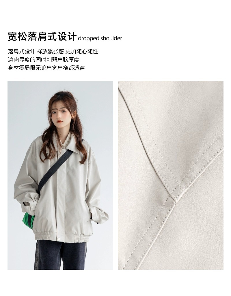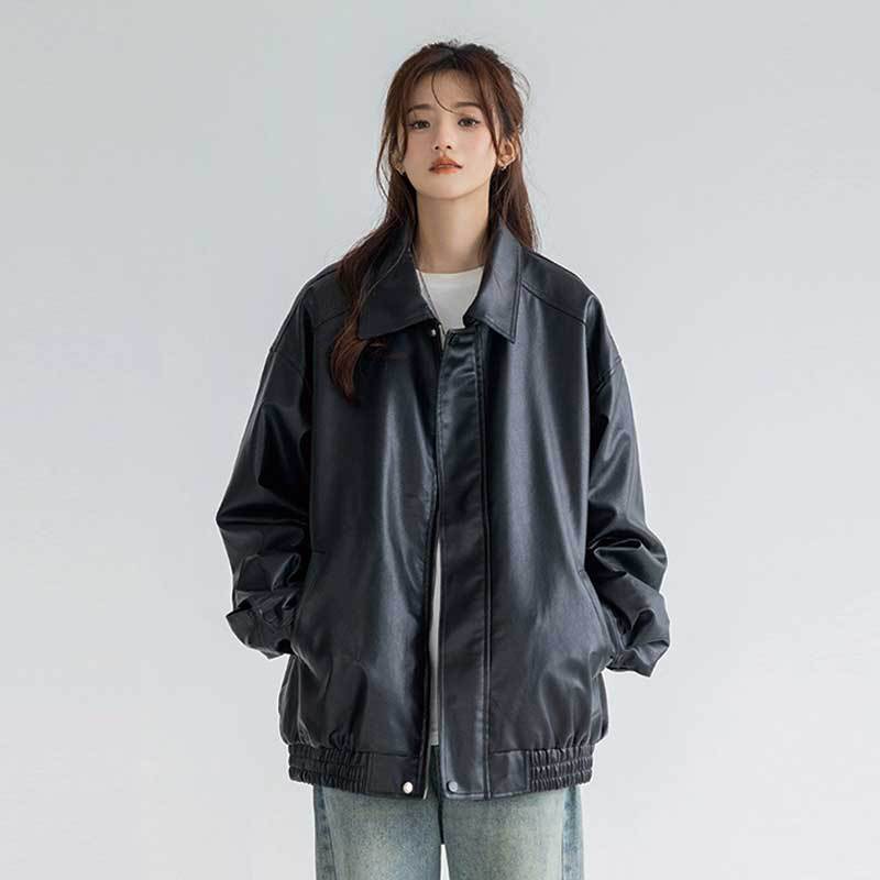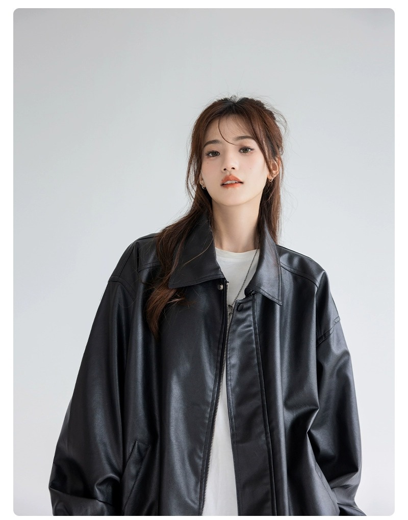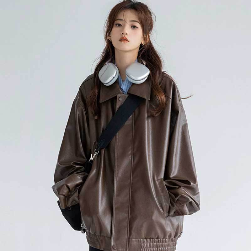 달콤한 쿨 스타일 가죽 자켓 여성용 2023 새로운 패션 브랜드 하이 엔드 센스 느슨한 아메리칸 스타일 레트로 라펠 여성용 Puleather 자켓스토어 가기