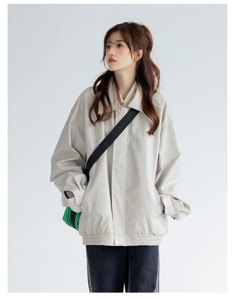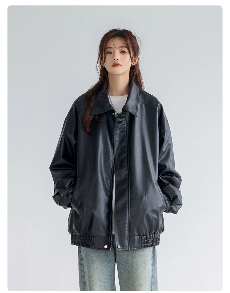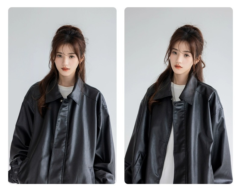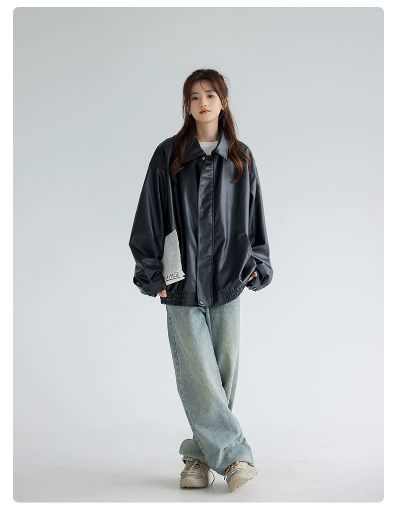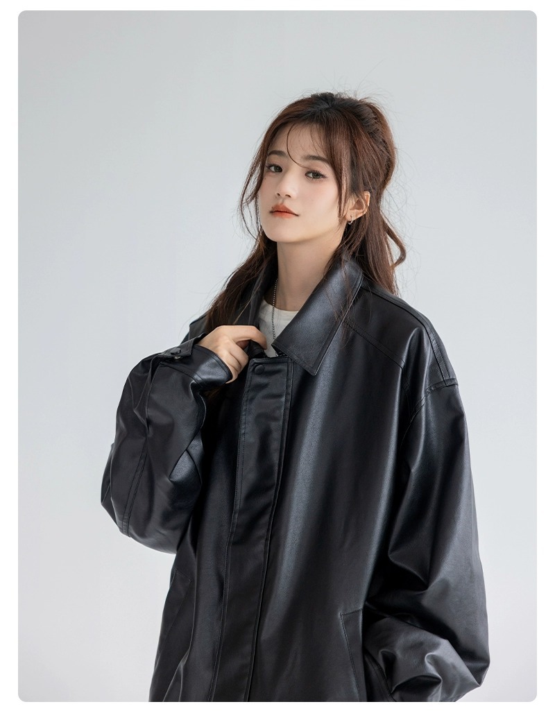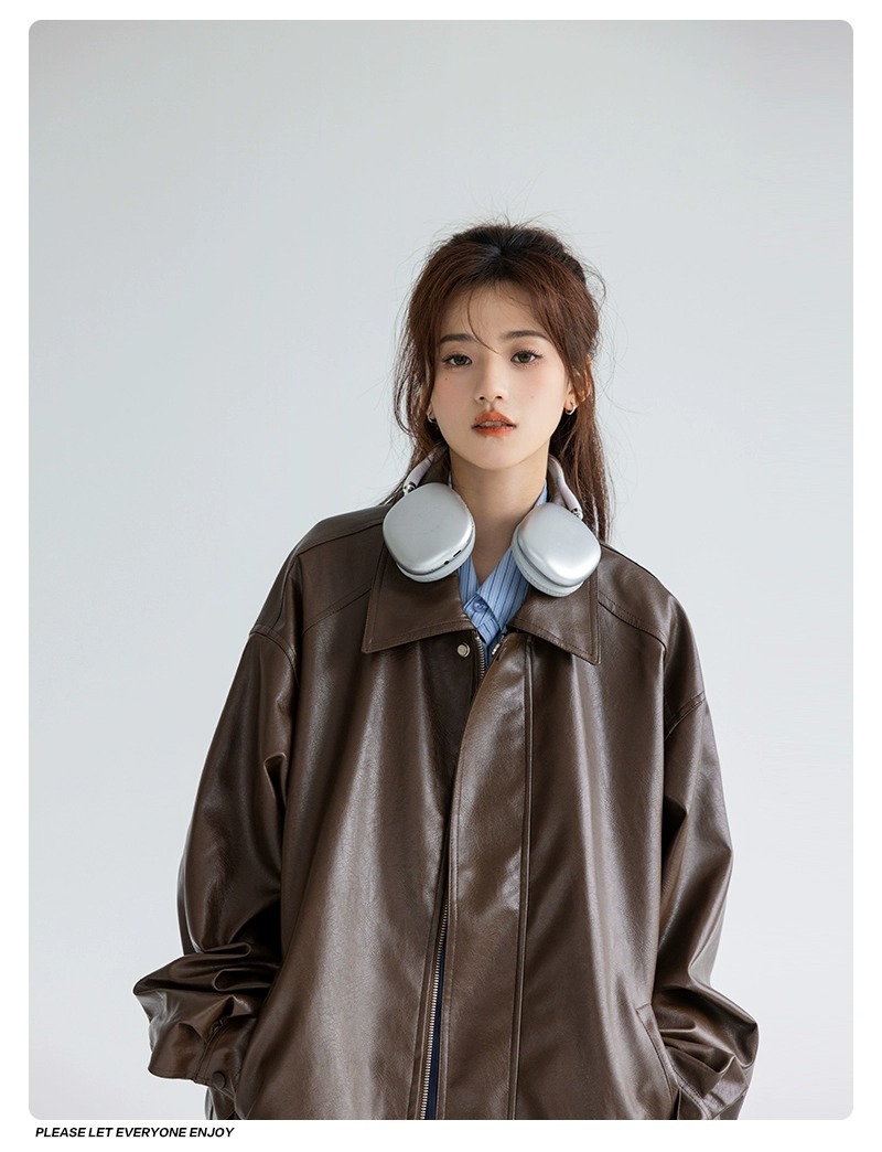 달콤한 쿨 스타일 가죽 자켓 여성용 2023 새로운 패션 브랜드 하이 엔드 센스 느슨한 아메리칸 스타일 레트로 라펠 여성용 Puleather 자켓스토어 가기