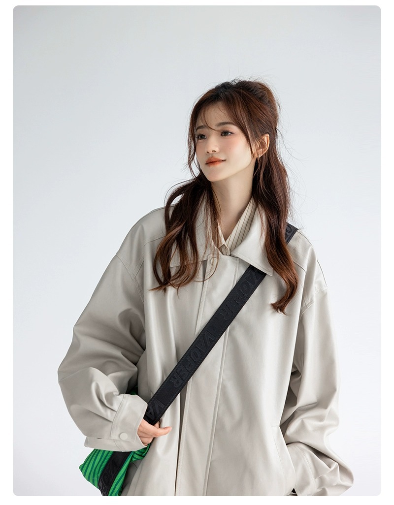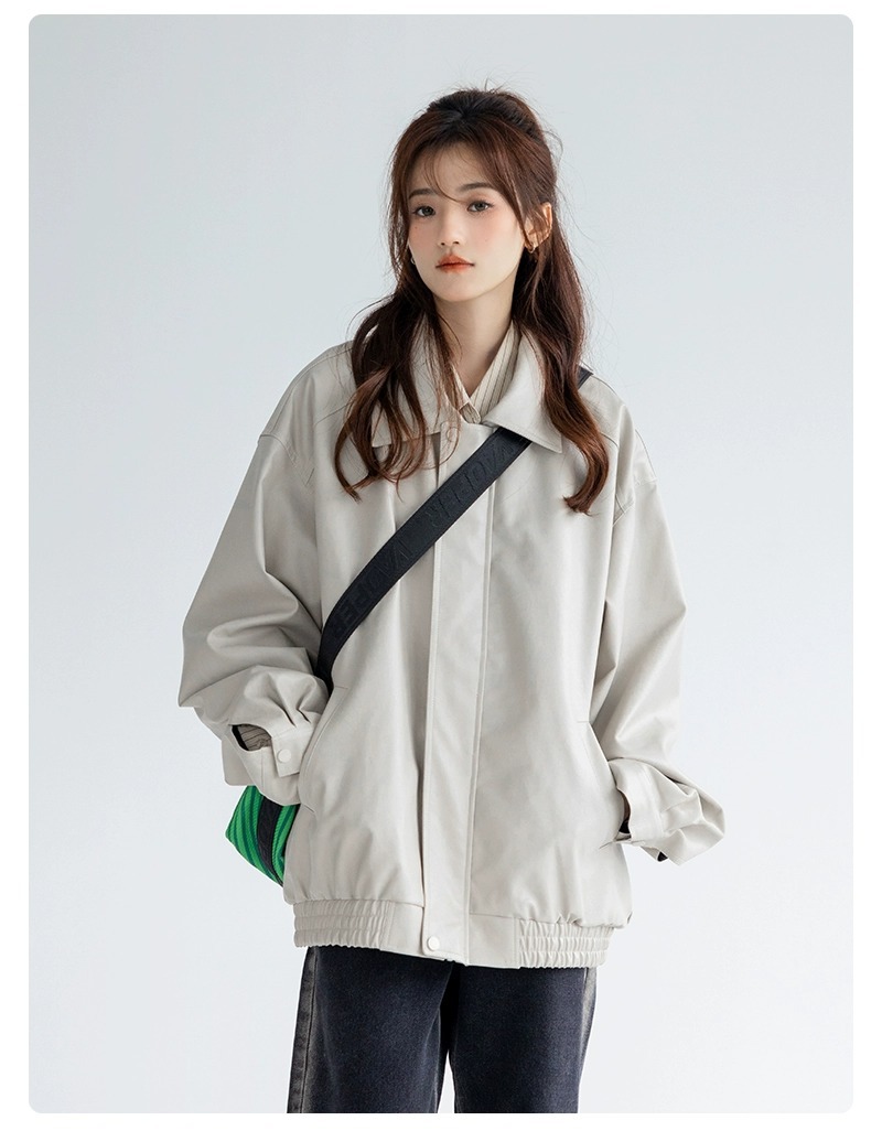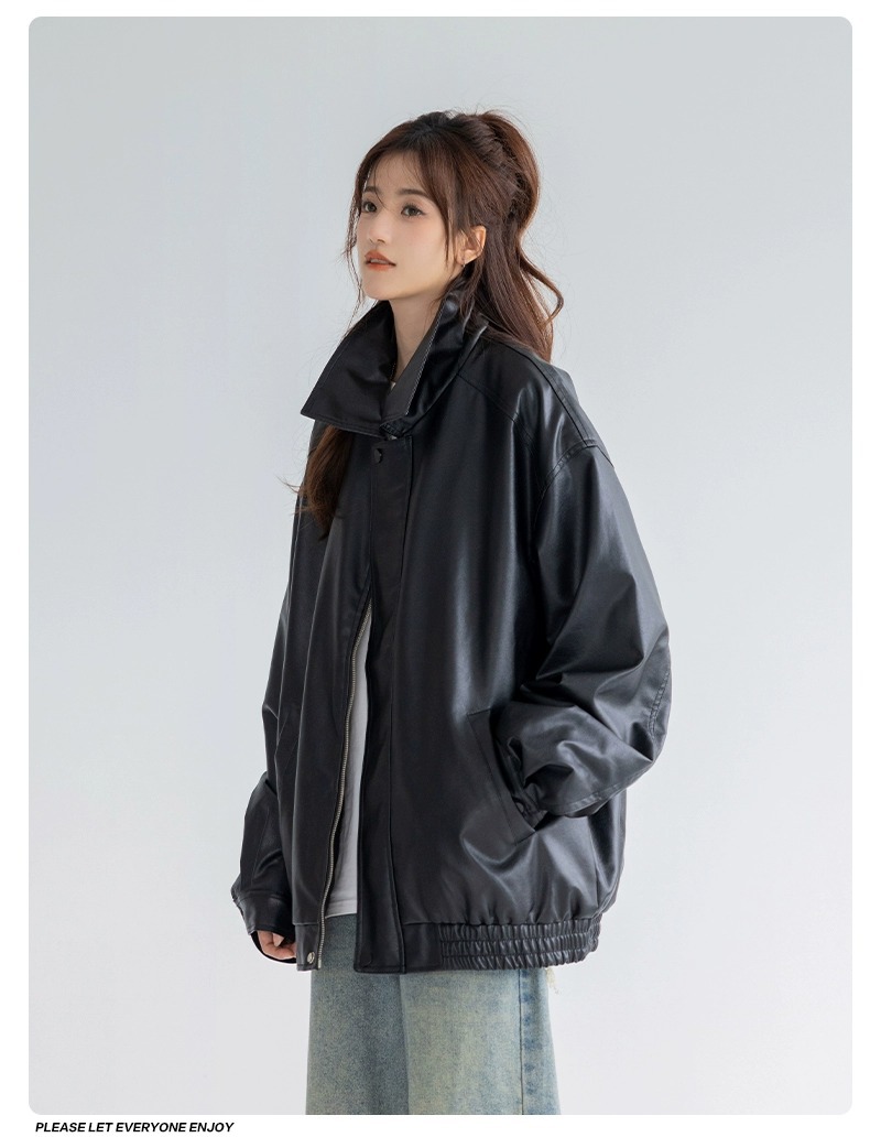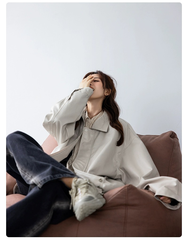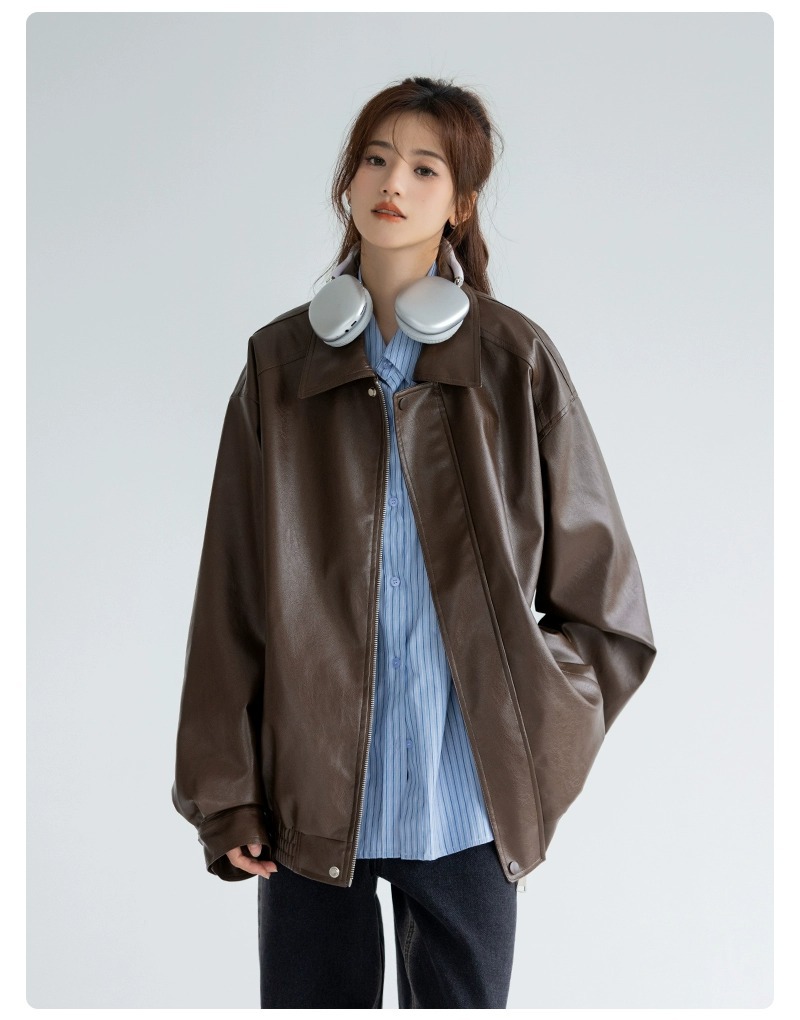 달콤한 쿨 스타일 가죽 자켓 여성용 2023 새로운 패션 브랜드 하이 엔드 센스 느슨한 아메리칸 스타일 레트로 라펠 여성용 Puleather 자켓스토어 가기