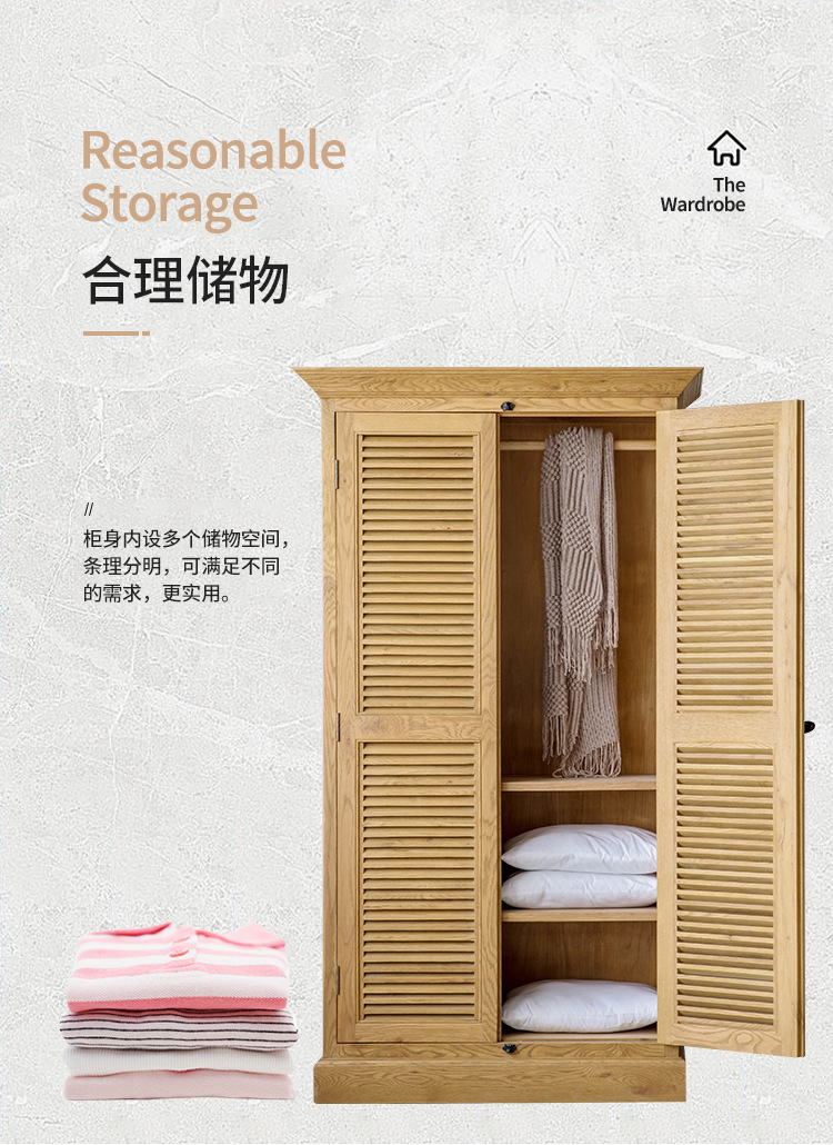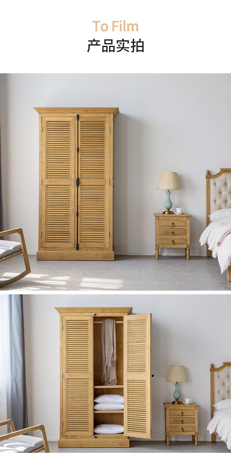 아메리칸 스타일 옷장 맞춤형 순수 단단한 나무 블라인드 슬라이딩 도어 옷장 체리 우드 북유럽 오크 간단한 침실 수납 캐비닛