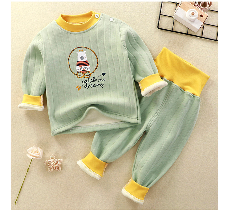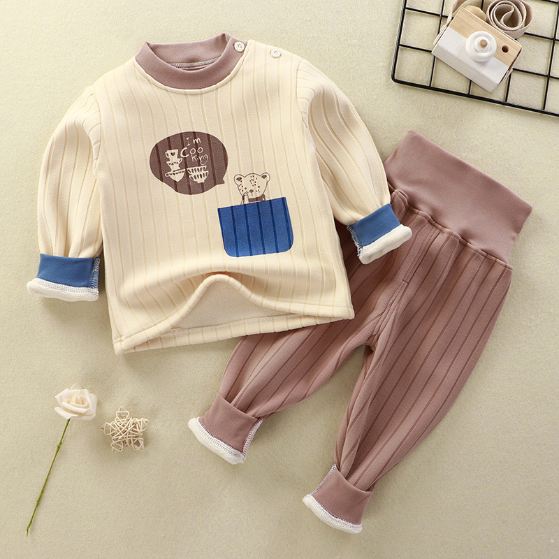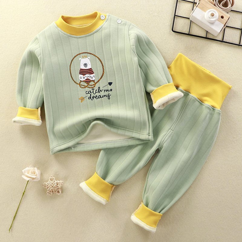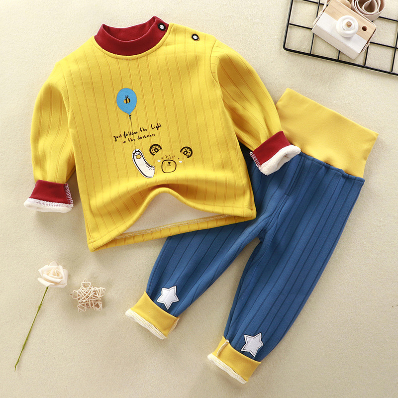 어린이 벨벳 세트 열 속옷베이스 잠옷 소년과 아기의 벨벳 소녀 가을과 겨울 가을 옷과 바지스토어 가기