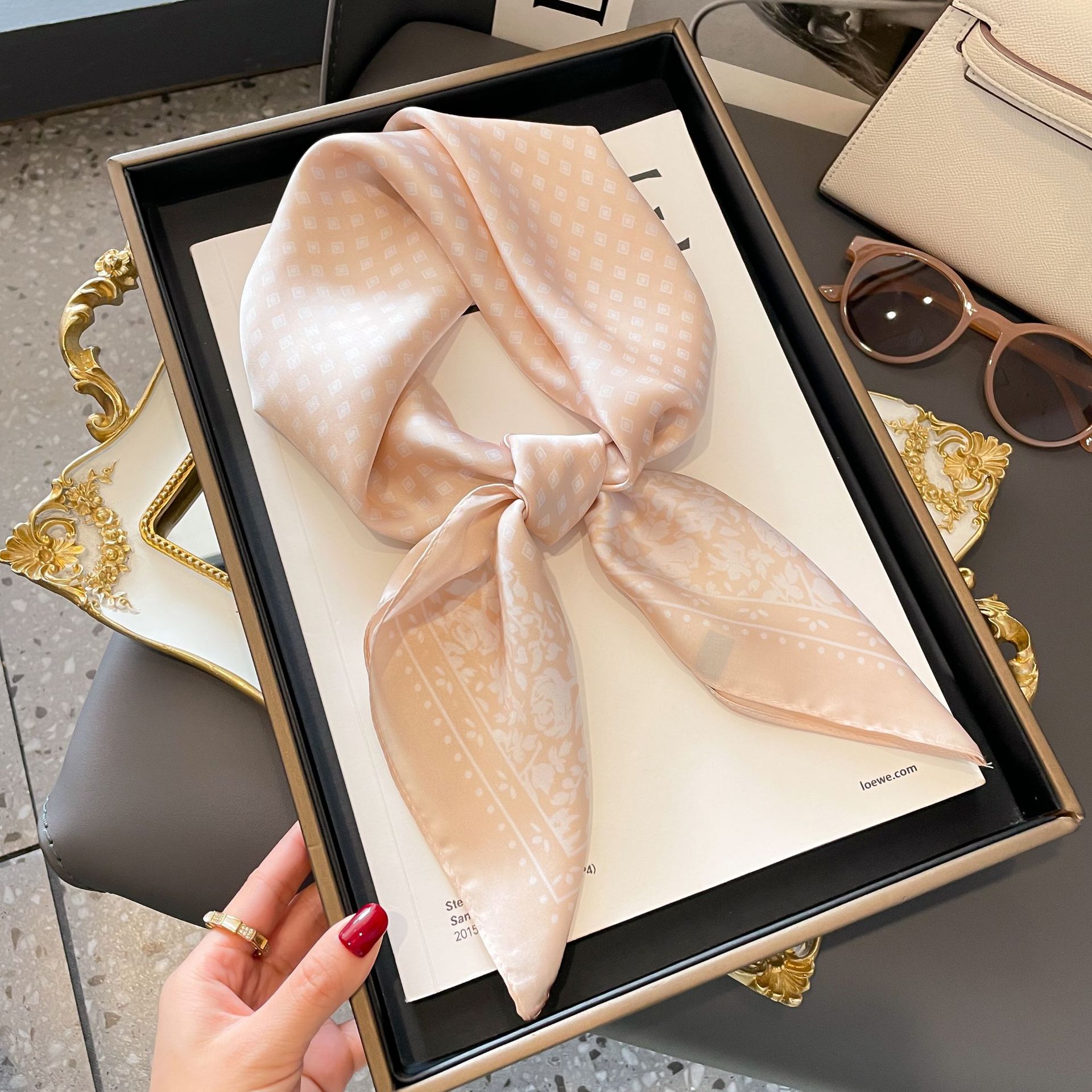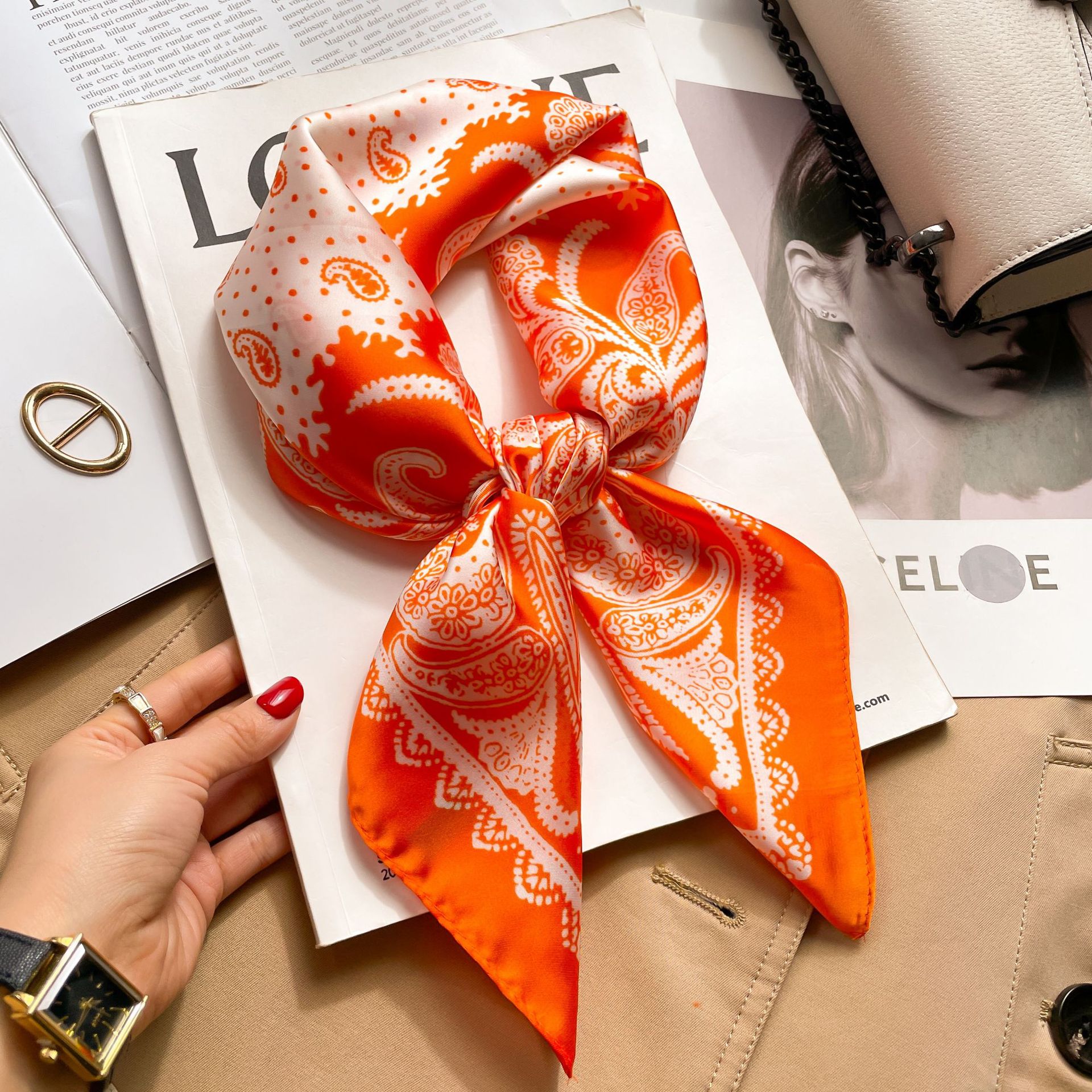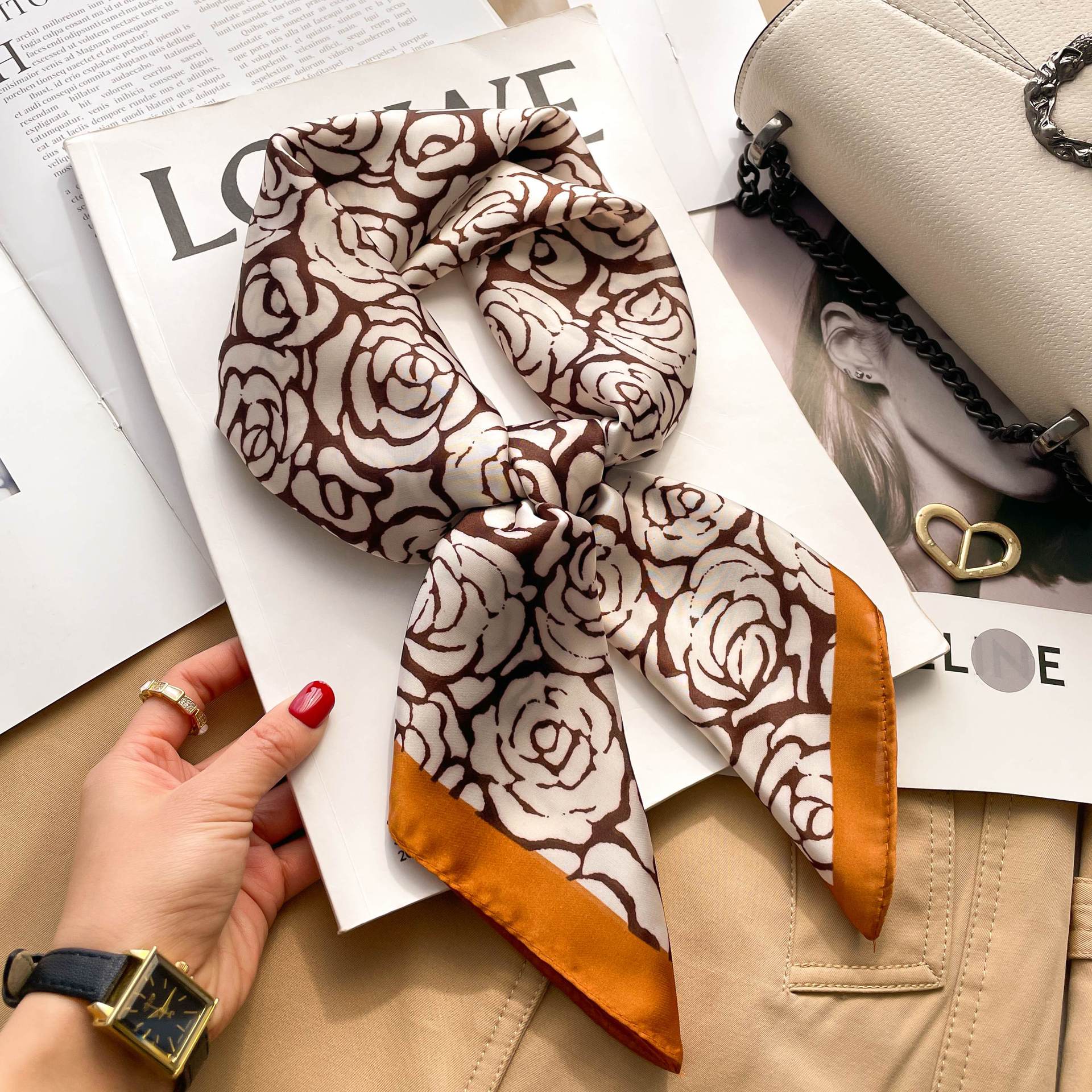 70cm 모조 실크 스카프 여성의 새로운 한국 스타일 작은 사각형 스카프 복고풍 패션 모든 일치 인쇄 전문 스카프