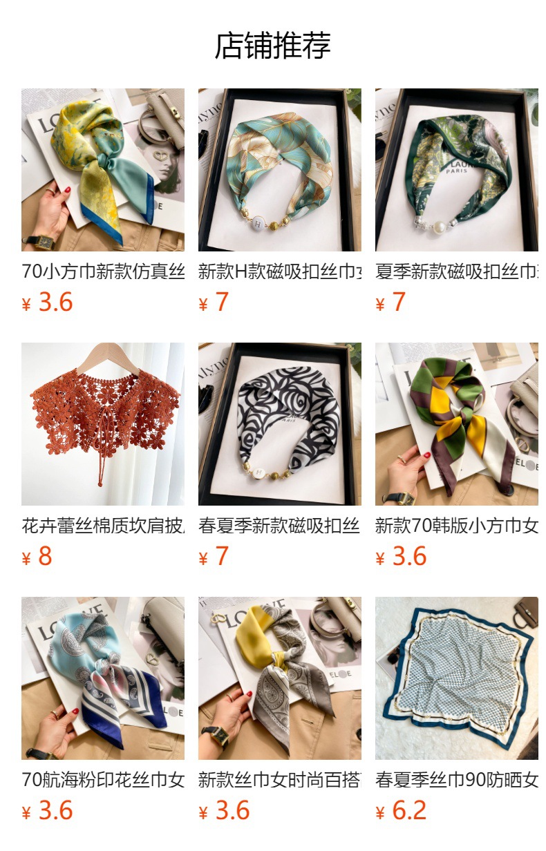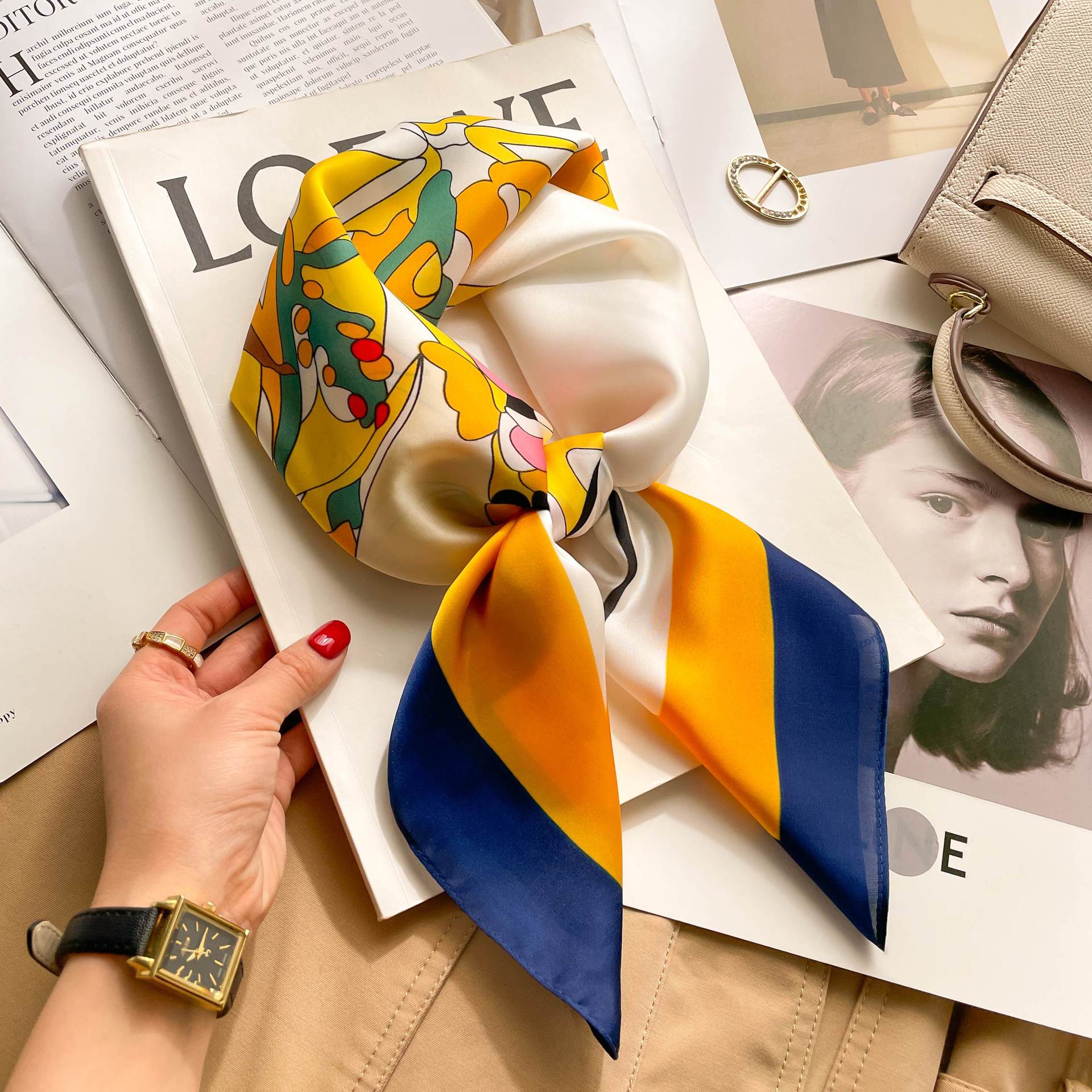 70cm 모조 실크 스카프 여성의 새로운 한국 스타일 작은 사각형 스카프 복고풍 패션 모든 일치 인쇄 전문 스카프스토어 가기