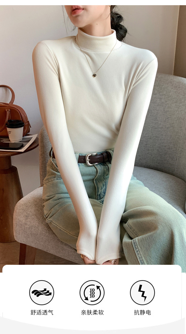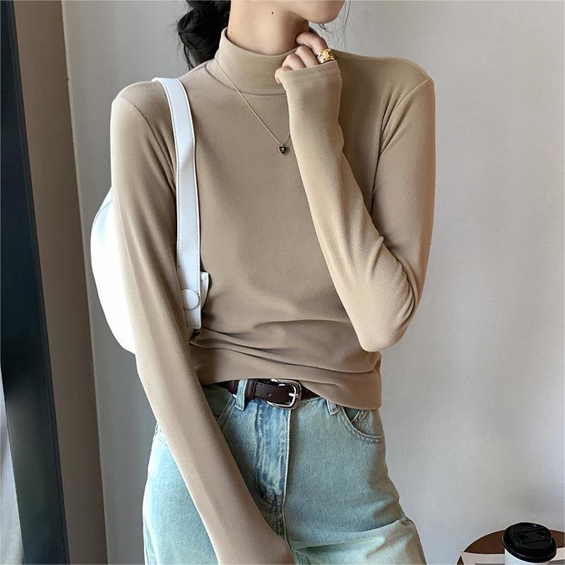 여성용 하프 하이 넥 플리스 베이스 레이어 셔츠 가을과 겨울 기모 기모 긴 소매 미들 넥 솔리드 컬러 슬림 핏 베이스 레이어 셔츠스토어 가기
