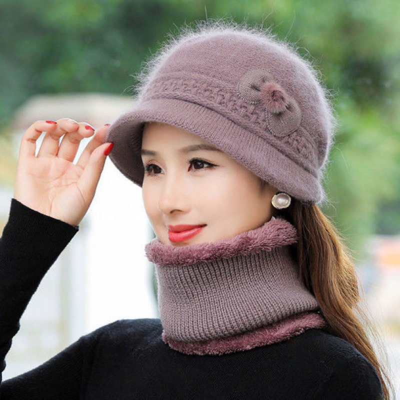 중년과 올드 가을과 겨울 모자 어린이 토끼 모피 니트 분지 모자 겨울 늙은 어머니 모자 늙은 숙녀 모자 스카프 세트