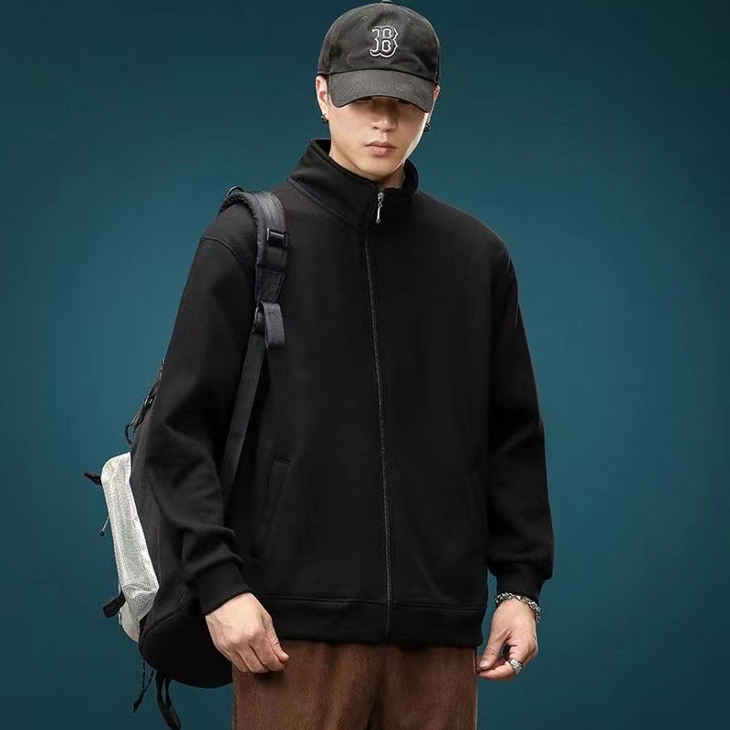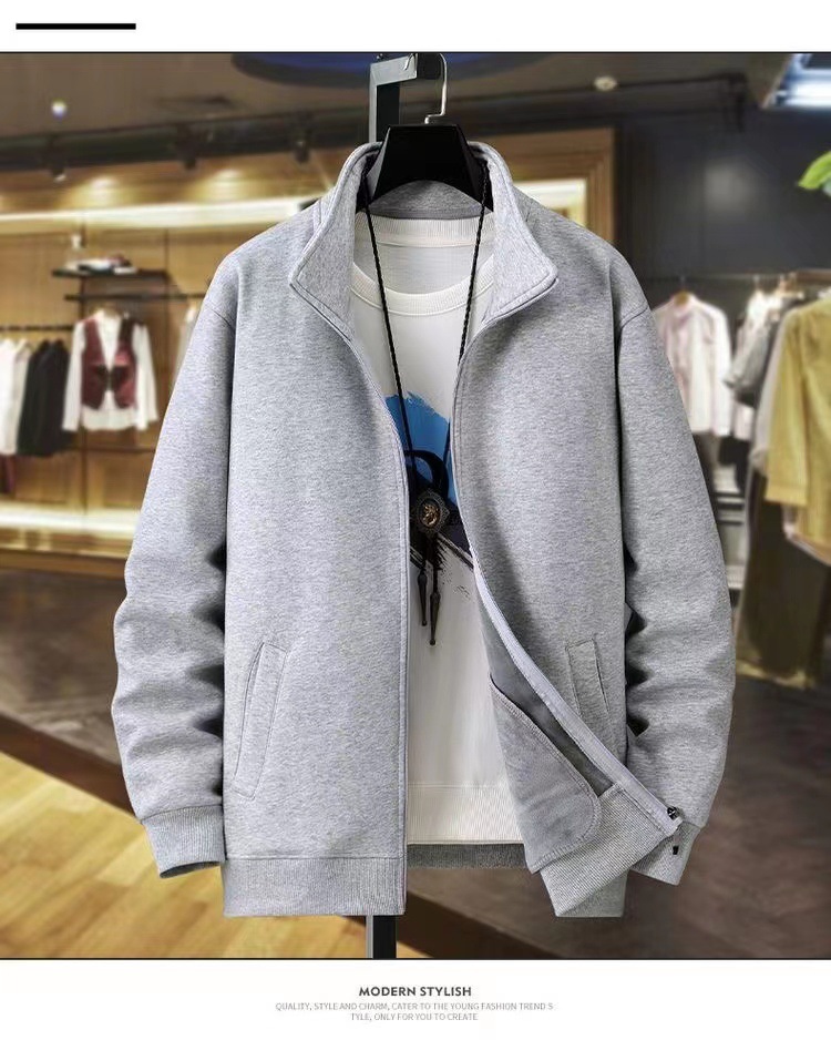 무거운 면 칼라 카디건 스웨터 기모 두꺼운 복합 옷깃 지퍼 남성용 단색 탑스토어 가기