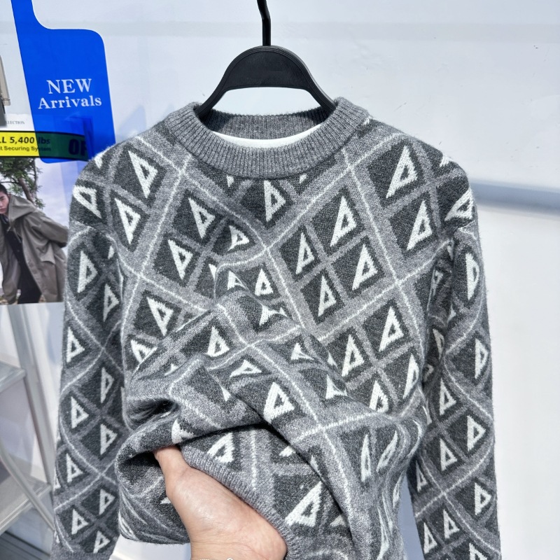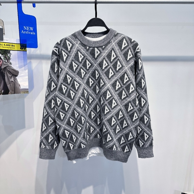 남자의 가을과 겨울 새로운 스웨터 패션 다이아몬드 자카드 커플 스웨터 크루넥 풀오버 스웨터 B1EBC4253