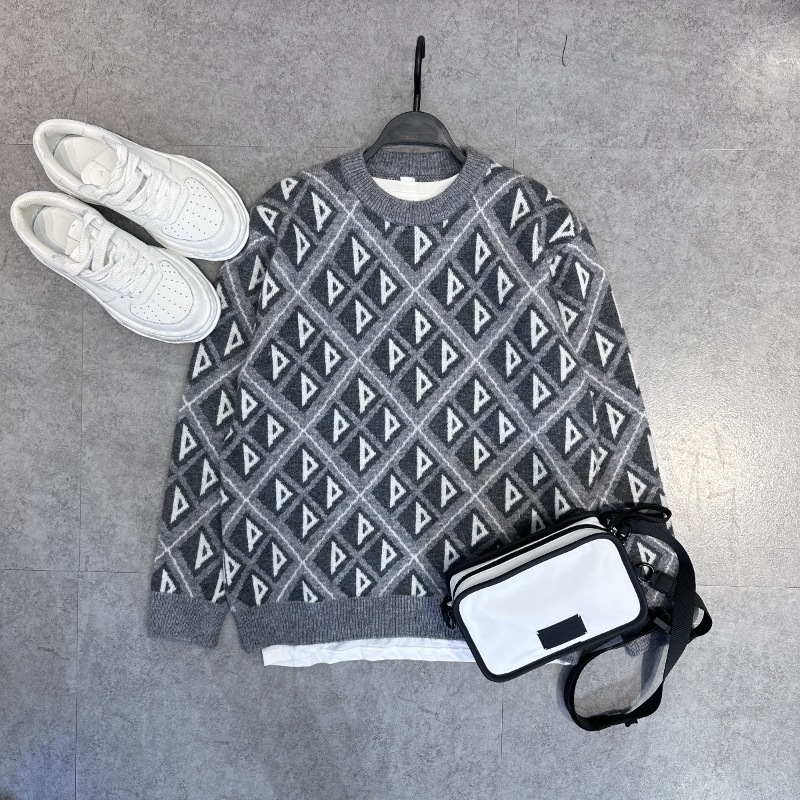 • 그레이-트라이앵글 P 자카드 스웨터