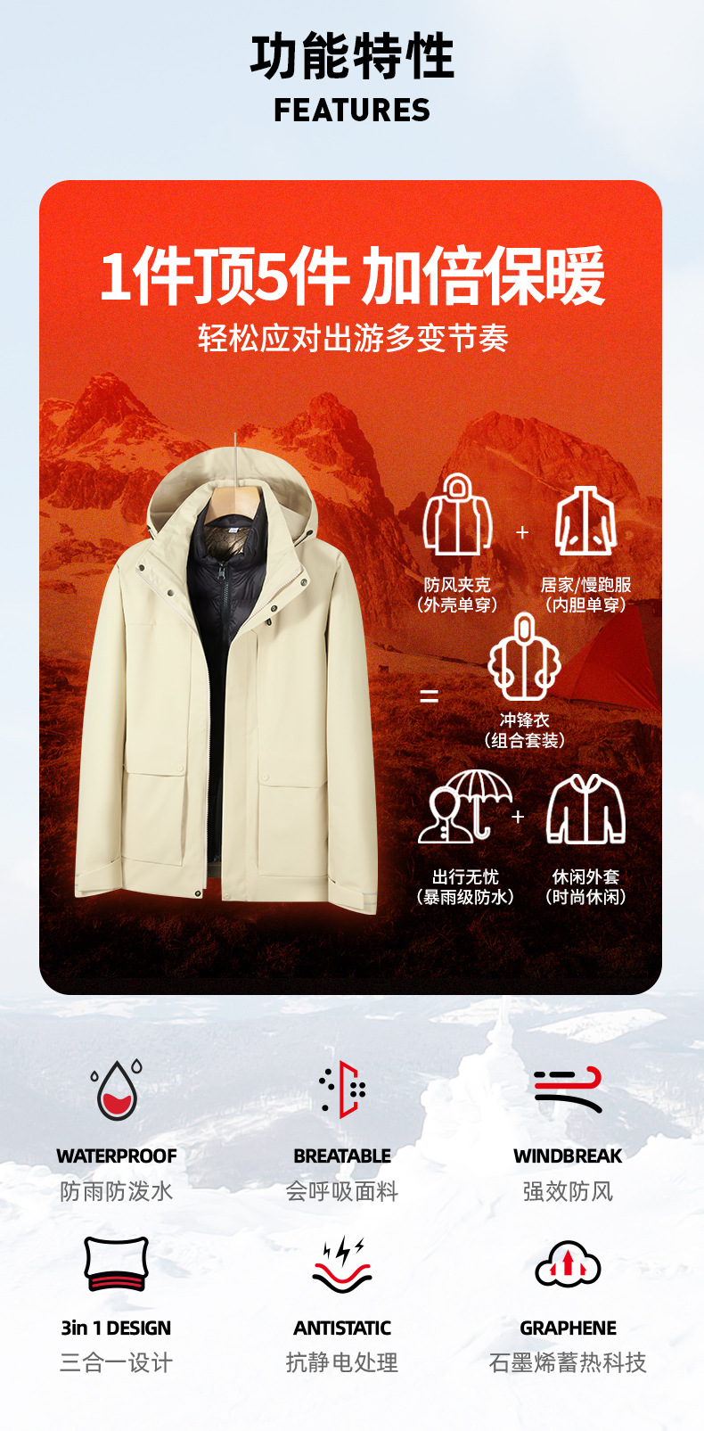 다운 재킷 남성용 쓰리인원 투피스 분리형 90 양털 방한 의류 여성용 방풍 통기성 야외 등산 의류스토어 가기