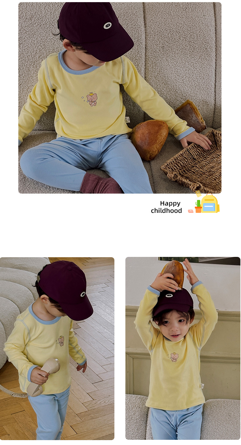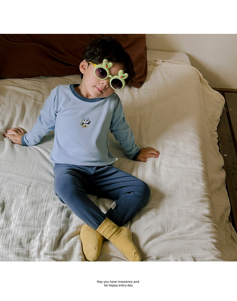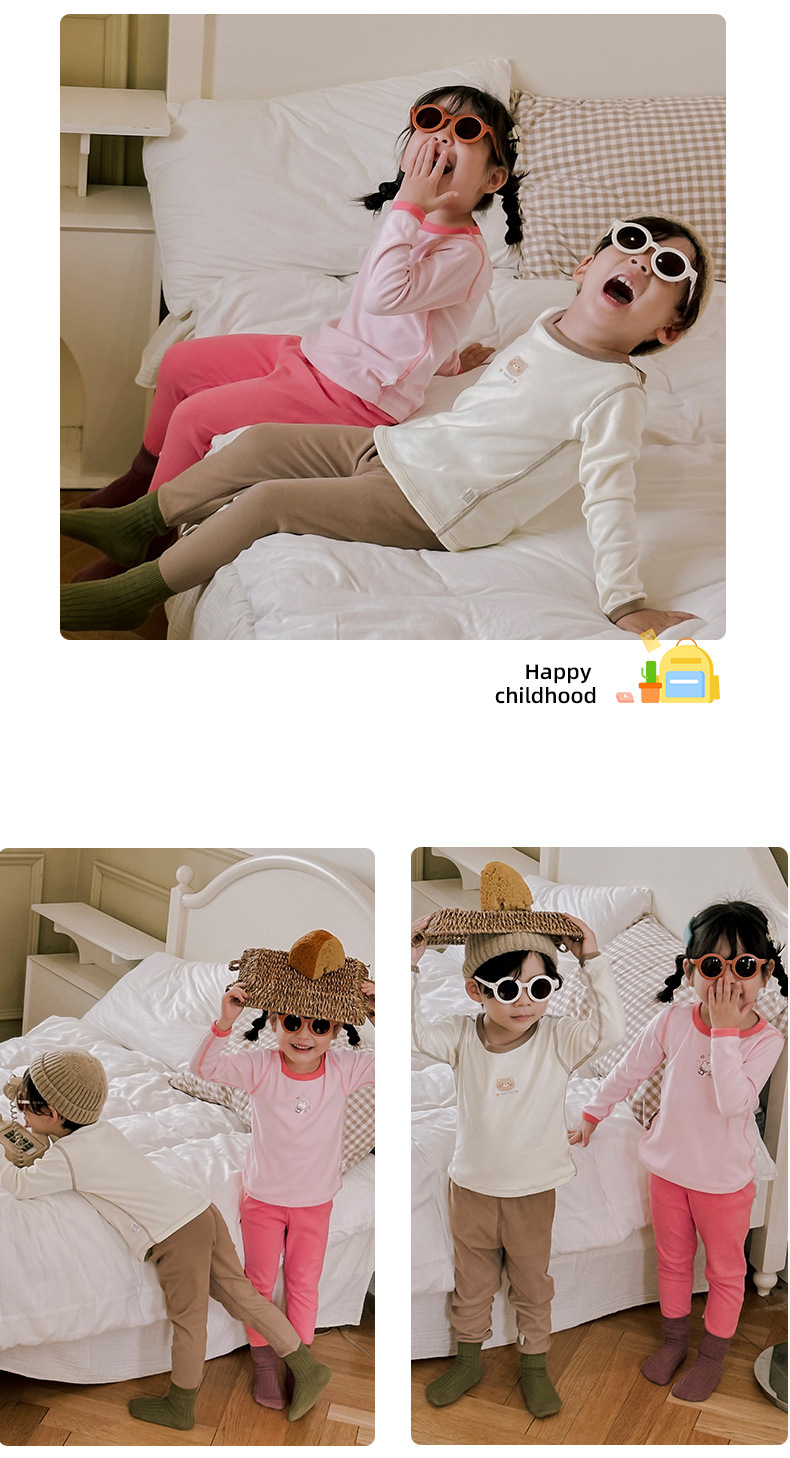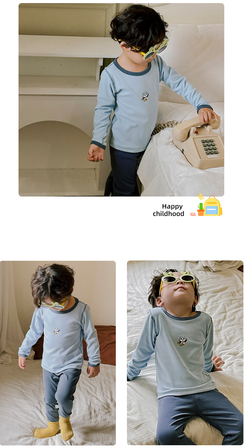 어린이 벨벳 홈 의류 가을과 겨울 소녀 잠옷 속옷 세트 뼈와 따뜻한 가을 옷과 소년과 아기를위한 바지스토어 가기