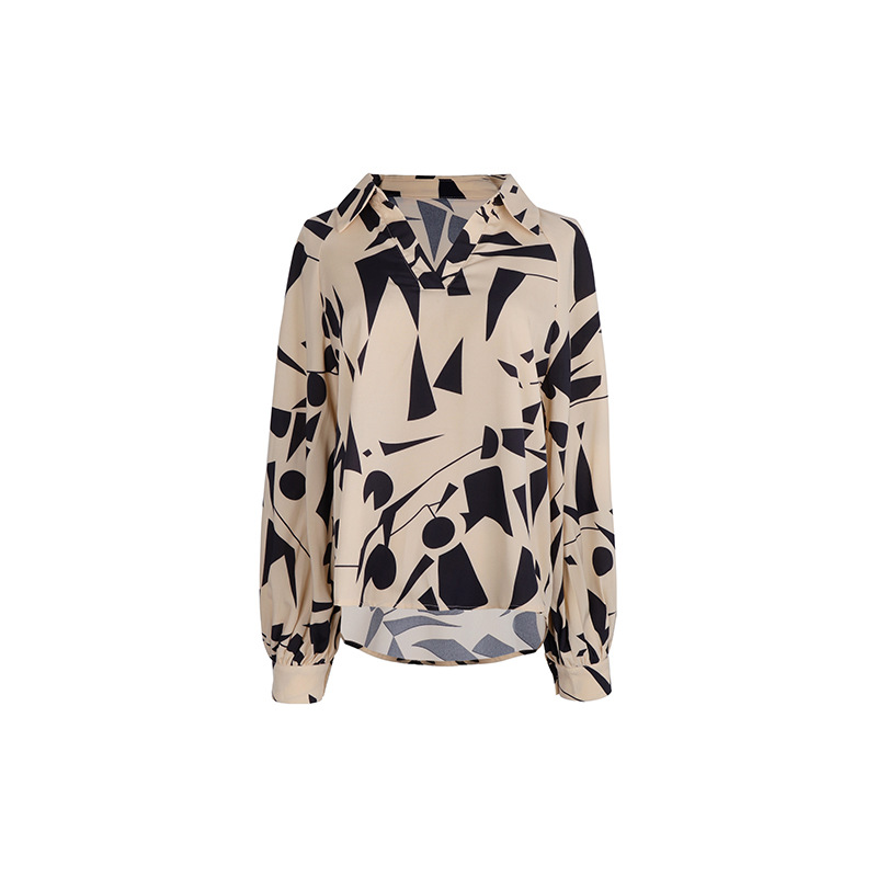 아마존 봄 가을 인기 유럽 및 미국 스타일 통근 캐주얼 개성 랜턴 슬리브 추상 기하학 프린트 셔츠 여성용
