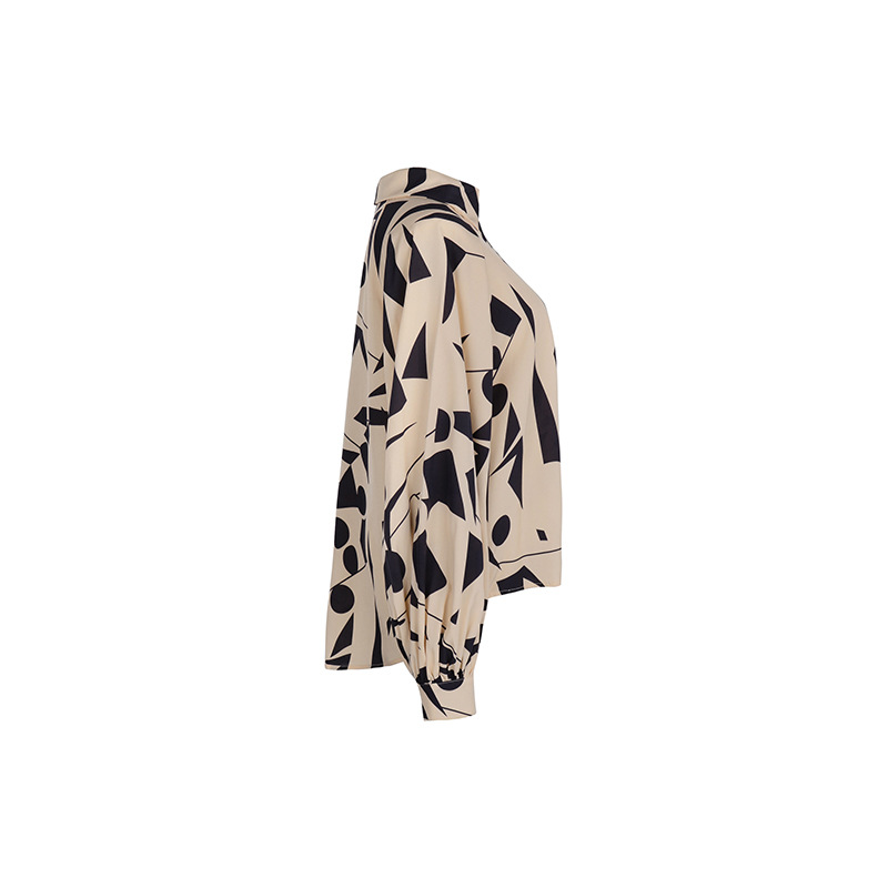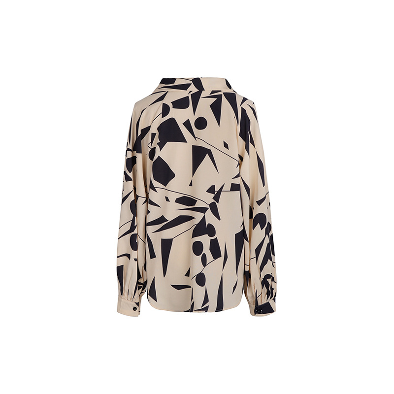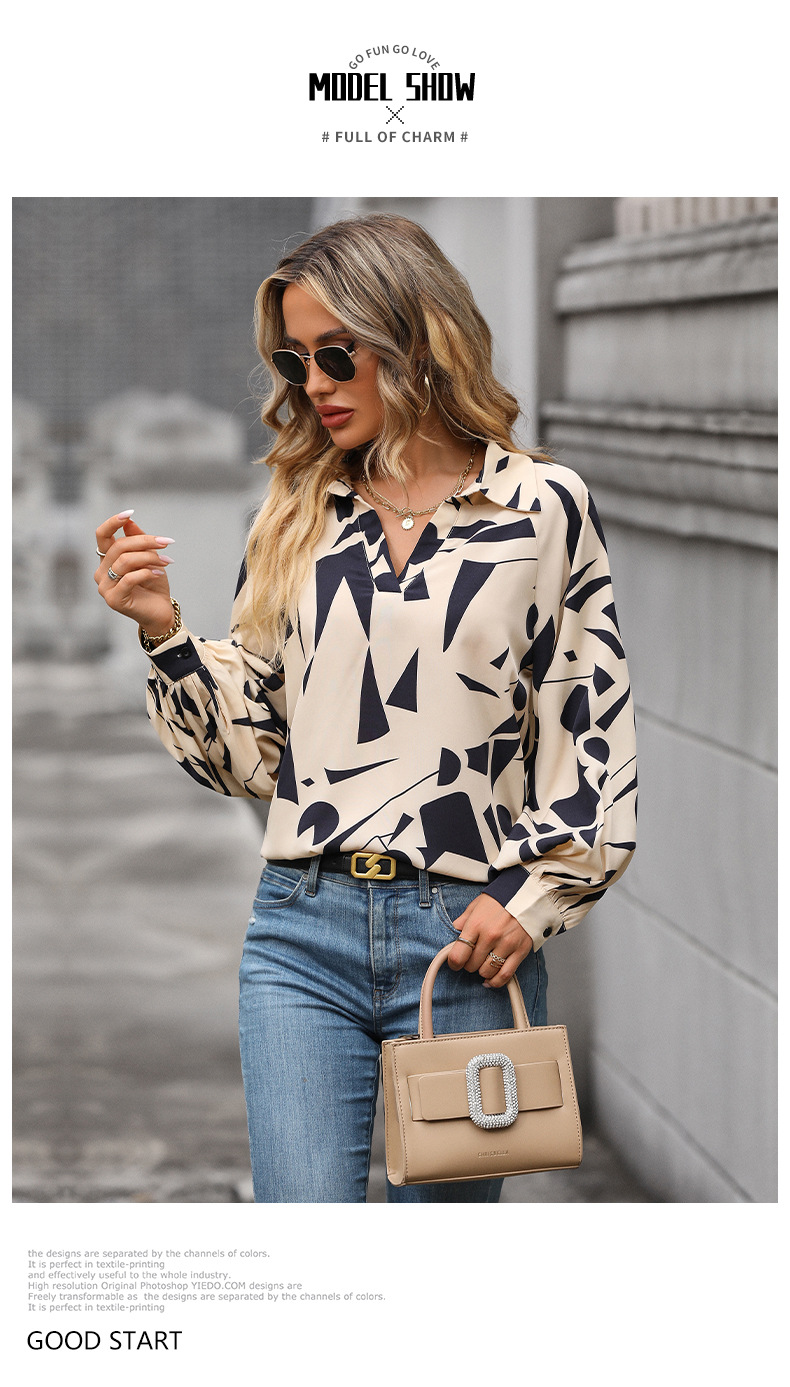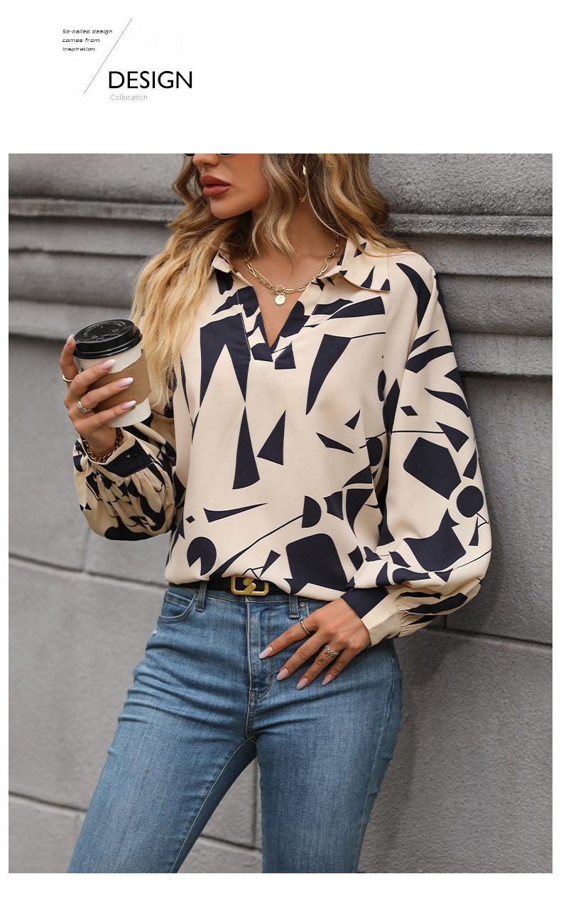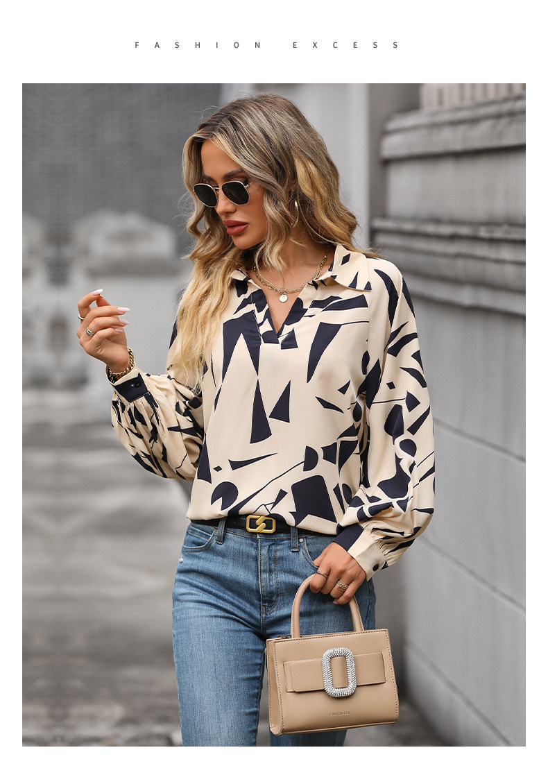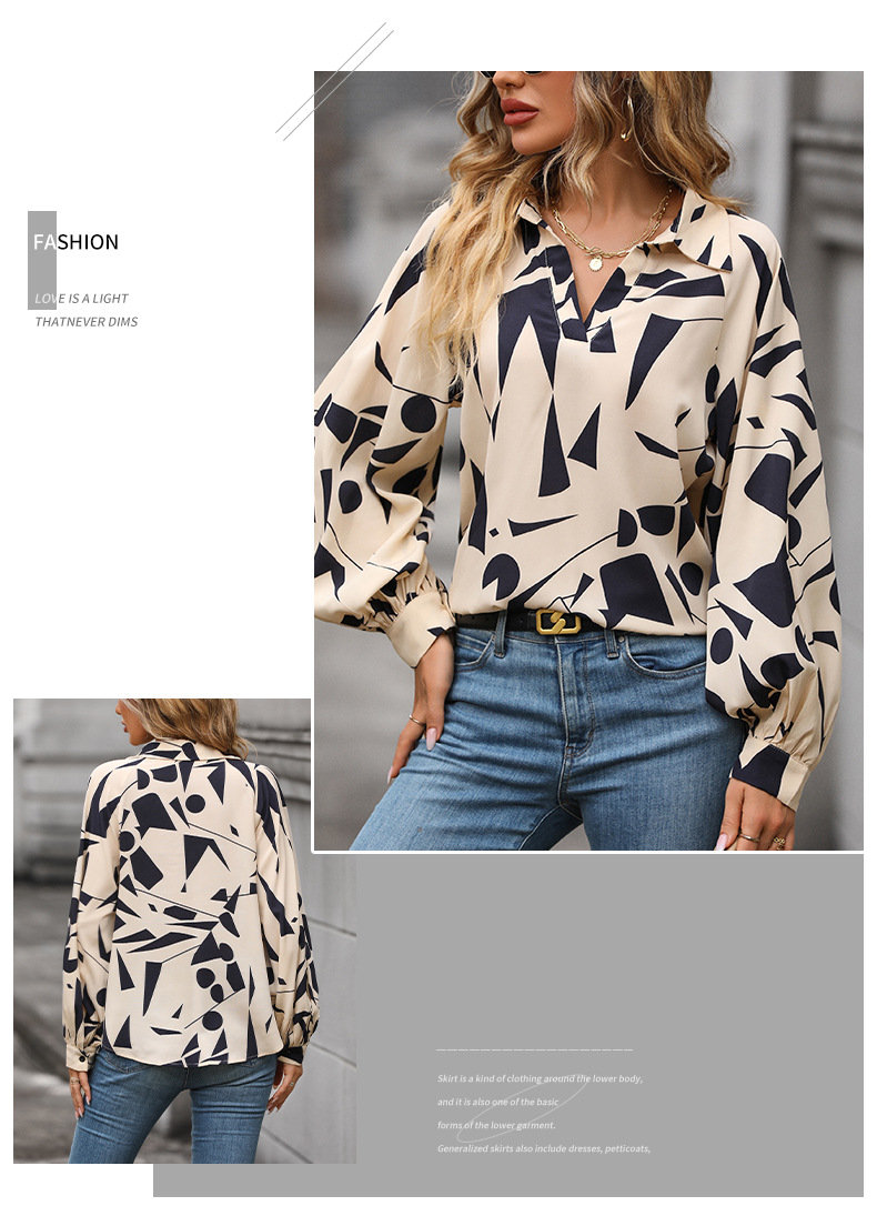 아마존 봄 가을 인기 유럽 및 미국 스타일 통근 캐주얼 개성 랜턴 슬리브 추상 기하학 프린트 셔츠 여성용스토어 가기