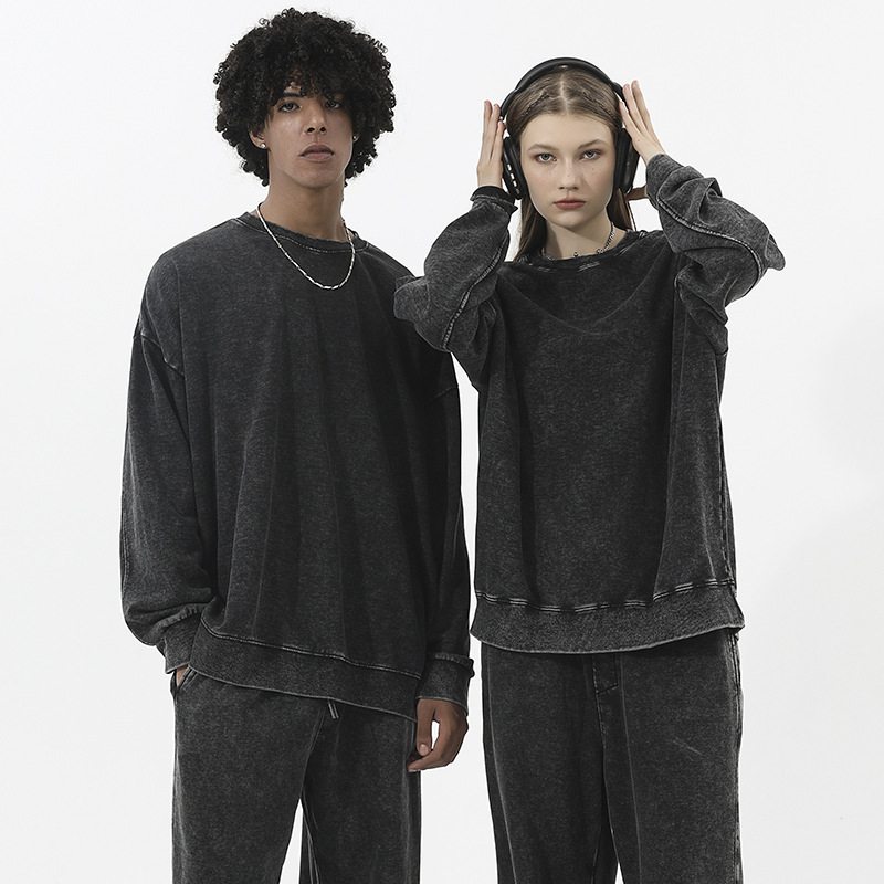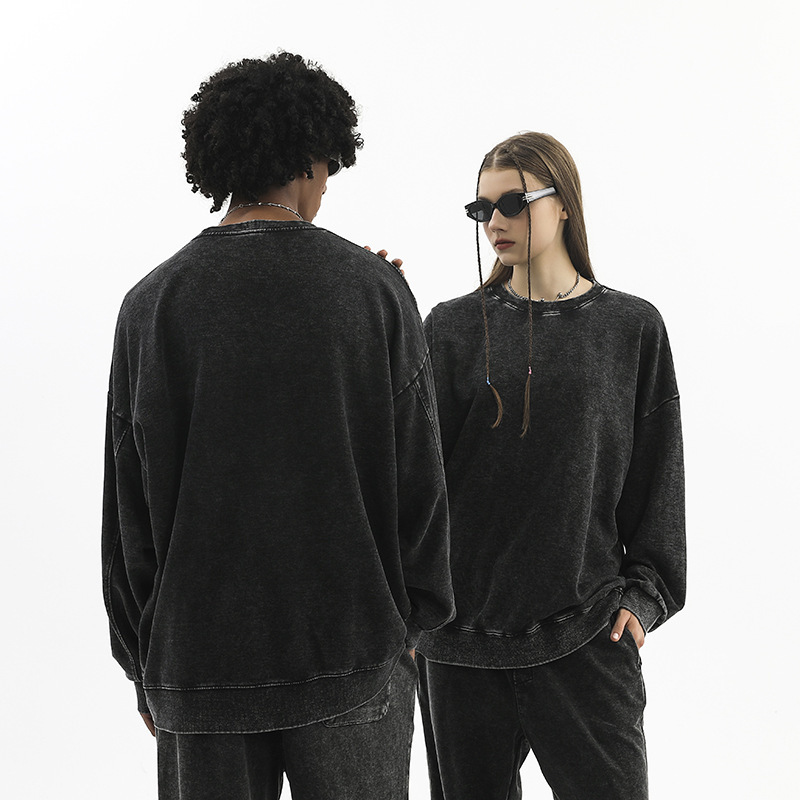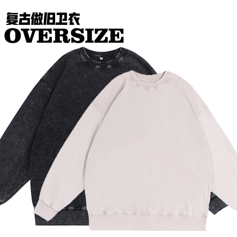 2023 가을과 겨울 크로스 보더 무거운 면 빛 빨 올드 스웨트 셔츠 아메리칸 빈티지 튀김 눈송이 크루넥 패션 브랜드 탑스토어 가기