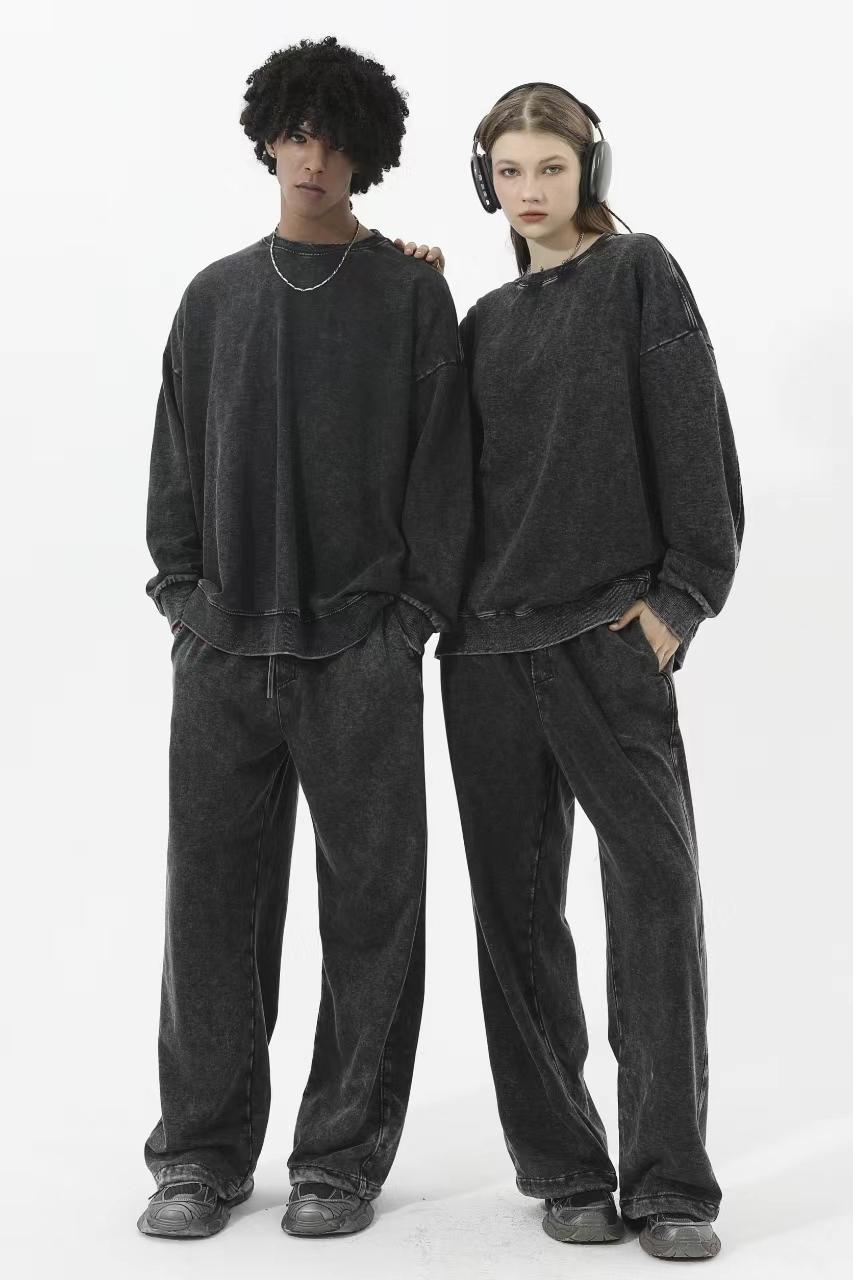 2023 가을과 겨울 크로스 보더 무거운 면 빛 빨 올드 스웨트 셔츠 아메리칸 빈티지 튀김 눈송이 크루넥 패션 브랜드 탑