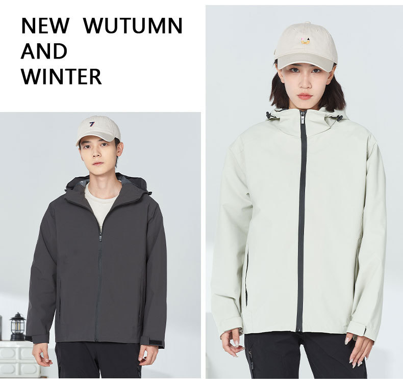 야외 폭행 의류 남성 방풍 방수 가을과 겨울 얇은 코트 싱글 레이어 원피스 등산 세트 여성 로고