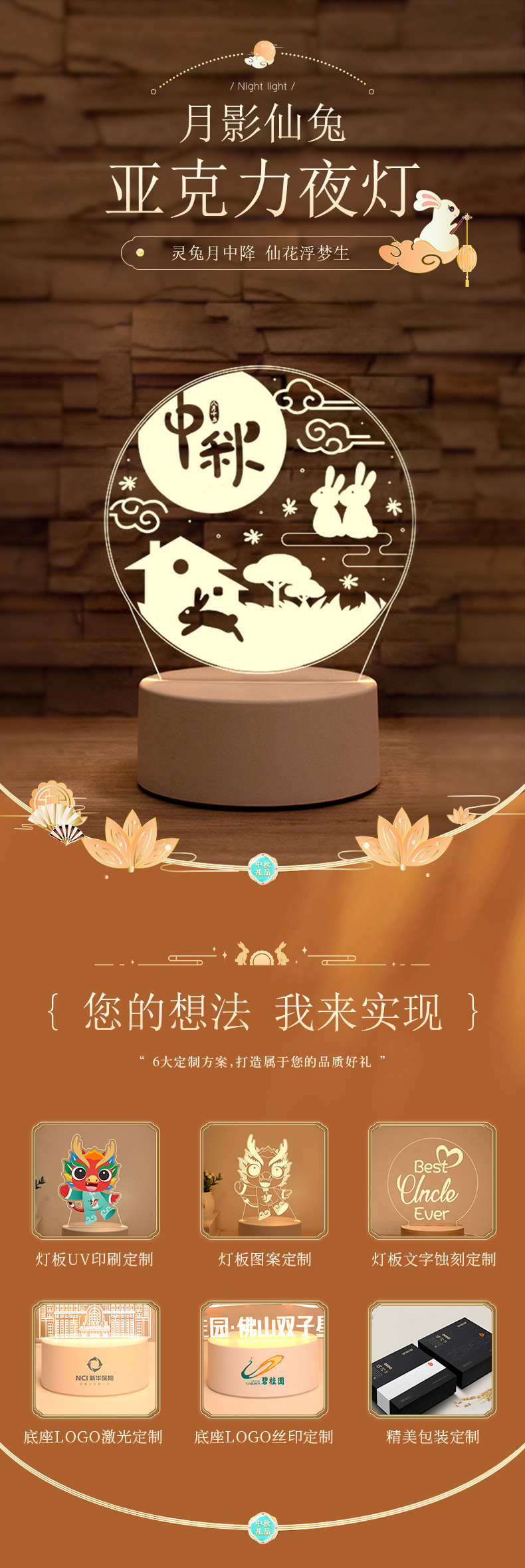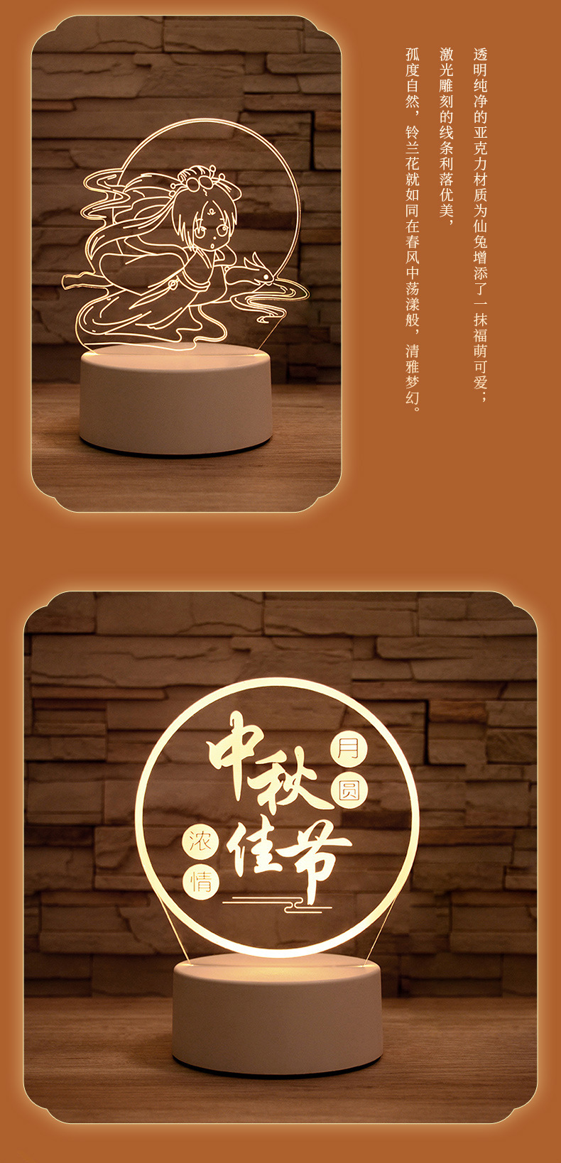중순 야간 조명 침대 옆 탁자 장식품 인쇄 가능한 로고 장식 창조적 인 절묘한 선물 3D 아크릴 테이블 램프