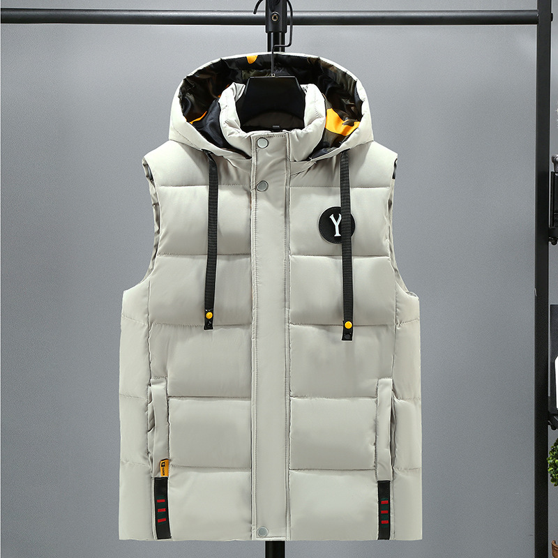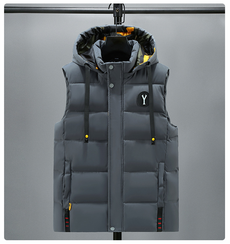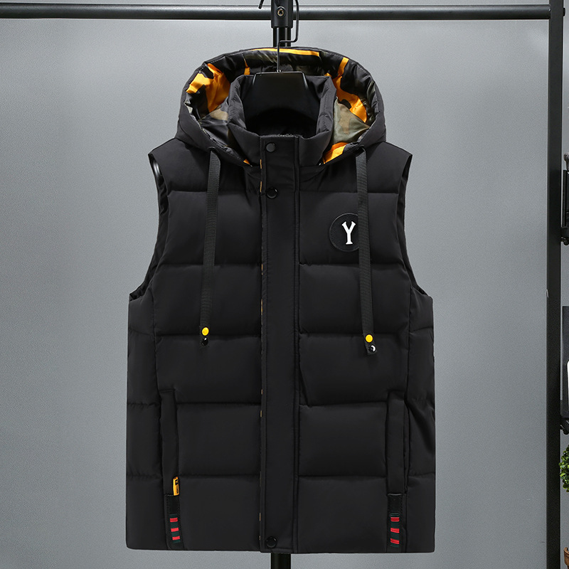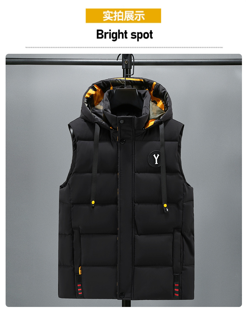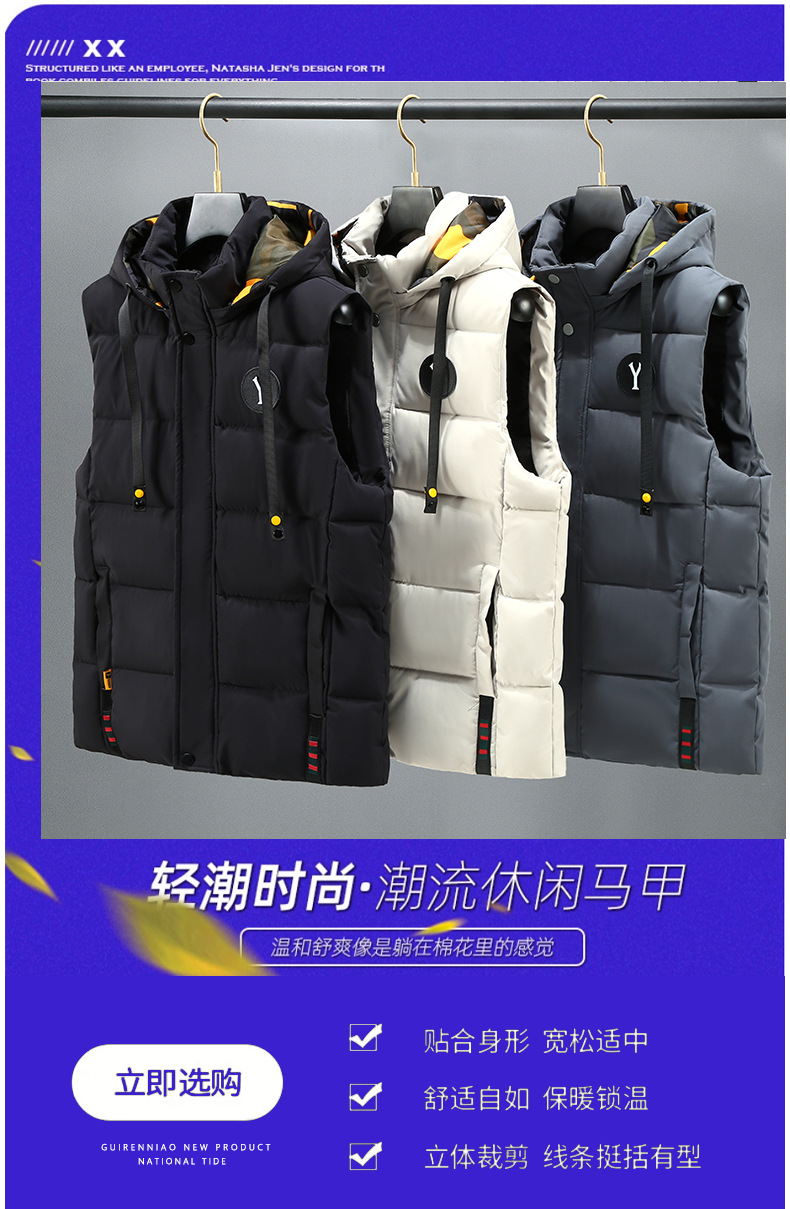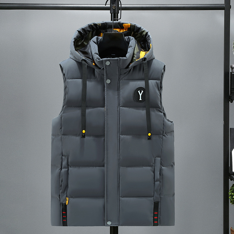 면 양복 조끼 남자의 새로운 모자 분리 가능한 트렌드 느슨한 잘 생긴 양복 조끼 따뜻한 다운 코튼 양복 조끼 남자 민소매스토어 가기