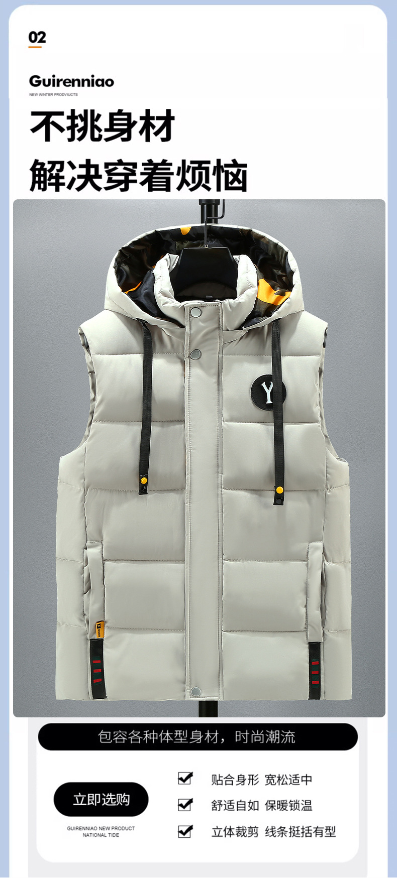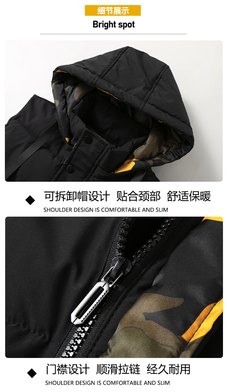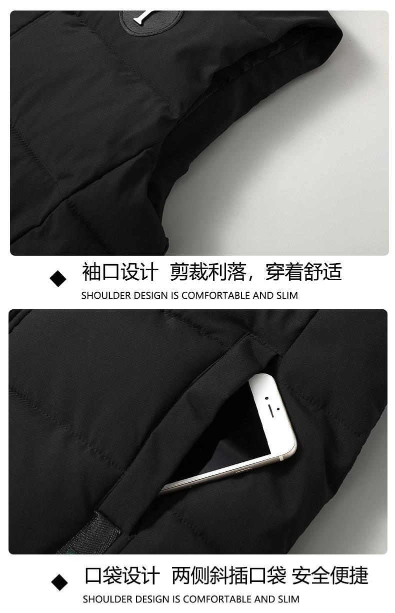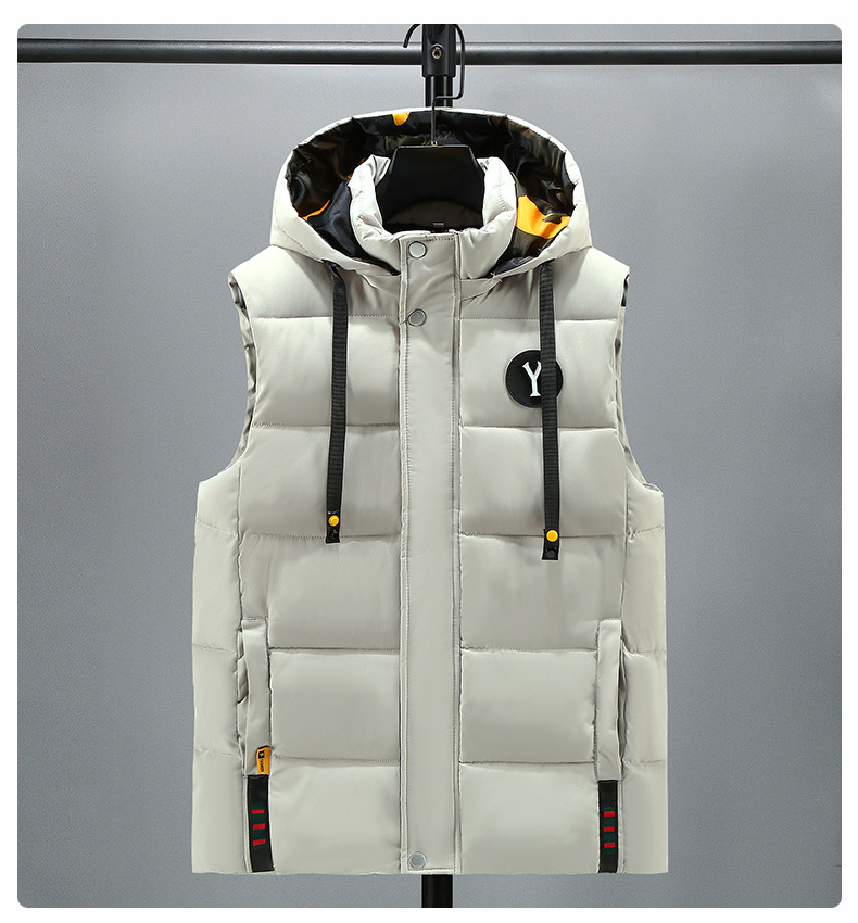 면 양복 조끼 남자의 새로운 모자 분리 가능한 트렌드 느슨한 잘 생긴 양복 조끼 따뜻한 다운 코튼 양복 조끼 남자 민소매스토어 가기