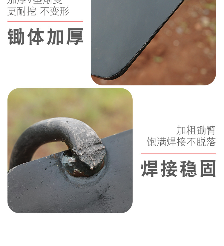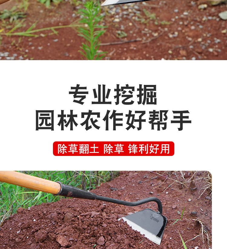 괭이 망간 강철 제초 괭이 두꺼운 나무 손잡이 중공 제초 유물 가정용 농업 도구 경량 제초 작은 괭이