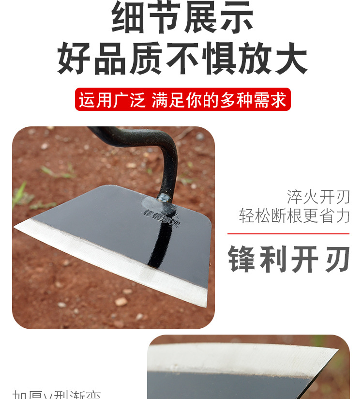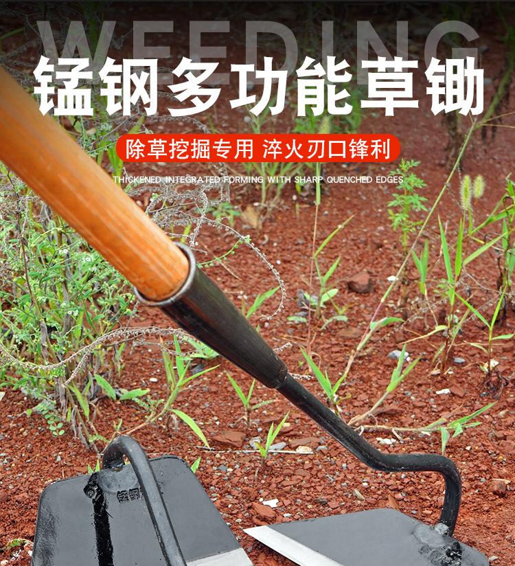 괭이 망간 강철 제초 괭이 두꺼운 나무 손잡이 중공 제초 유물 가정용 농업 도구 경량 제초 작은 괭이스토어 가기