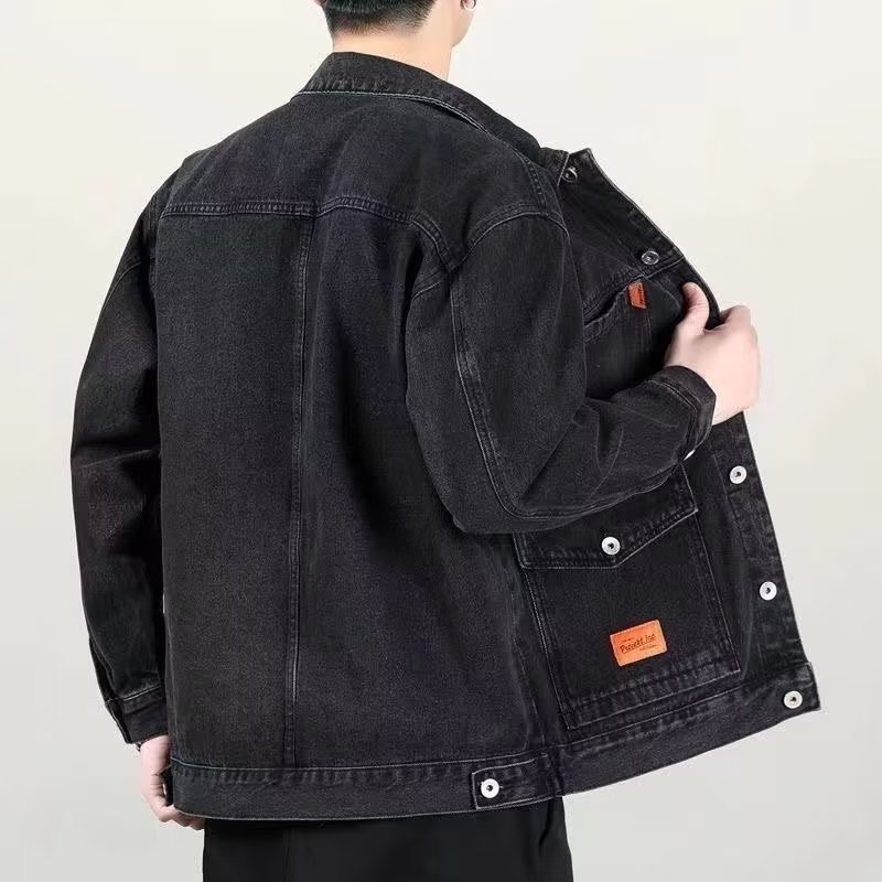 2023 봄 새로운 데님 코트 남자의 느슨한 frock 재킷 유행 남자의 플러스 사이즈 남자의 옷깃 데님스토어 가기