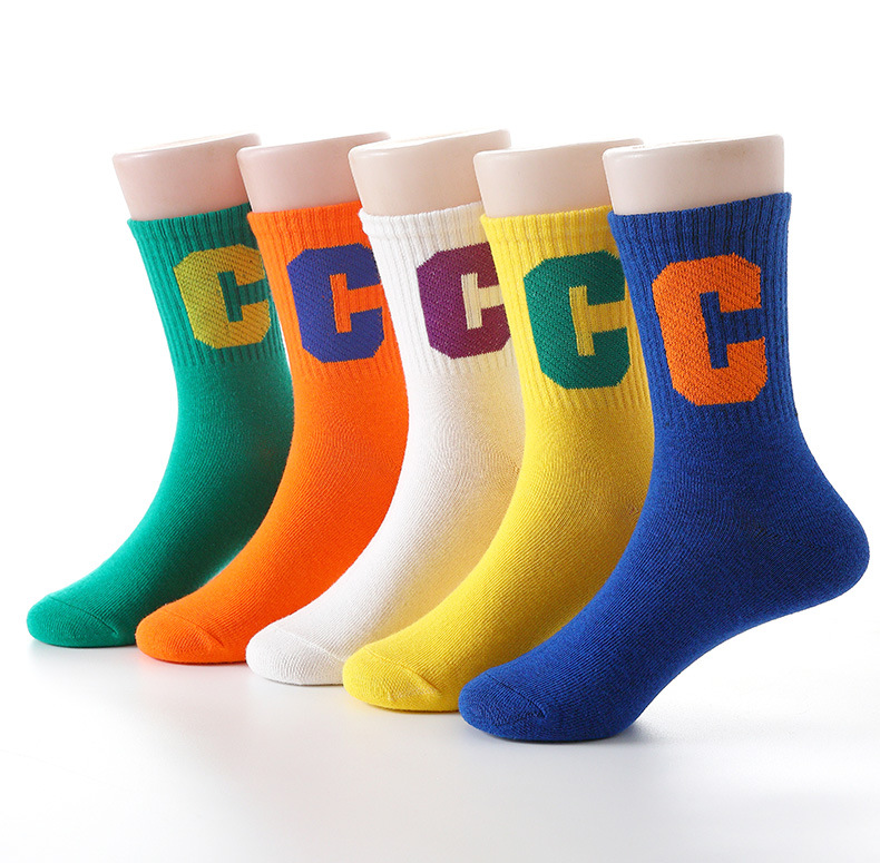 어린이 양말 면 양말 봄과 가을 스포츠 스타일 학생 양말 소년과 소녀를위한 큰 C 편지 유행 양말 가을과 겨울 면 양말스토어 가기