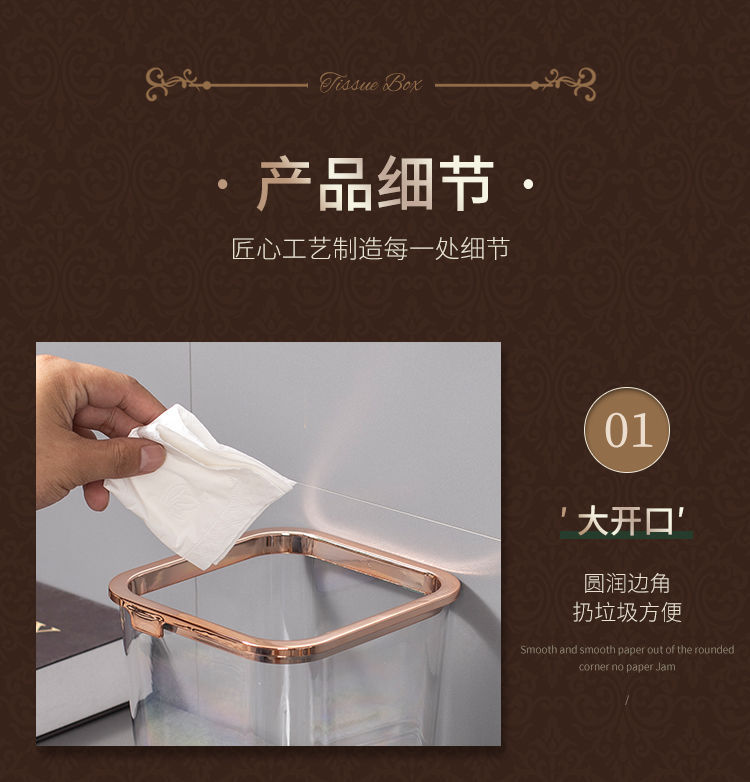 데스크탑 휴지통 홈 고가의 빛 럭셔리 프레스 링 휴지통 주방 거실 침실 사무실 간단한 대용량