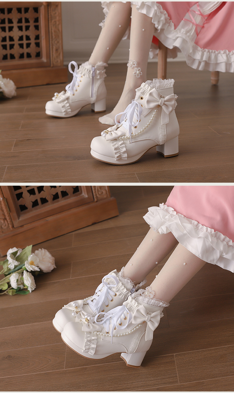 28 --- 43 플러스 사이즈 부츠 활 두꺼운 뒤꿈치 발목 부츠 달콤한 소녀 로리타 미들 힐 여성 부츠 대외 무역 여성 신발
