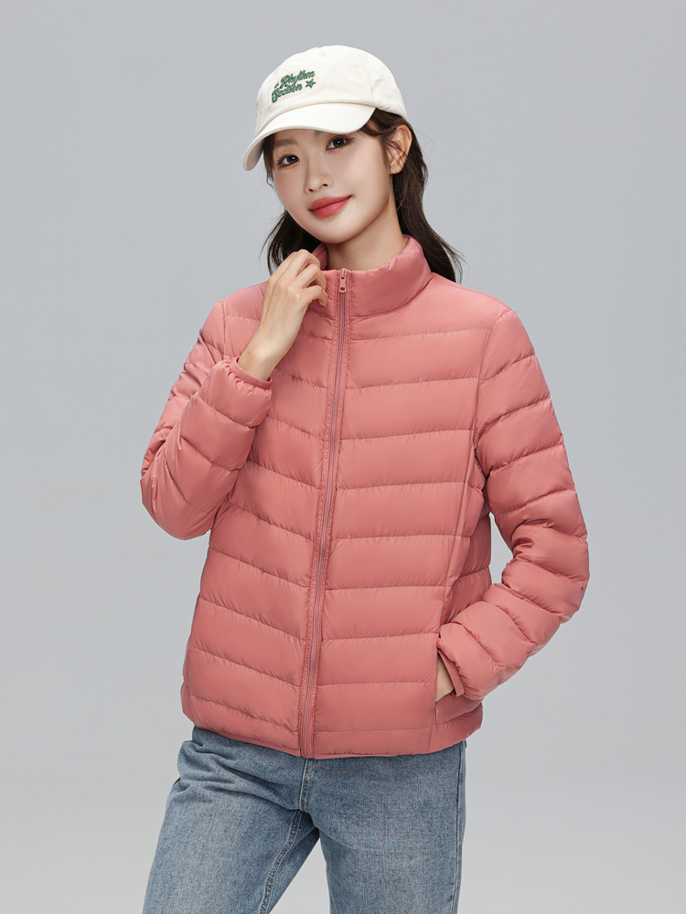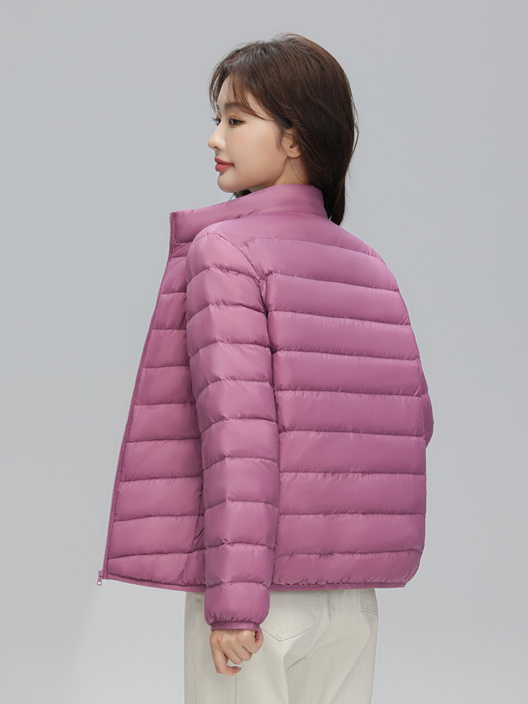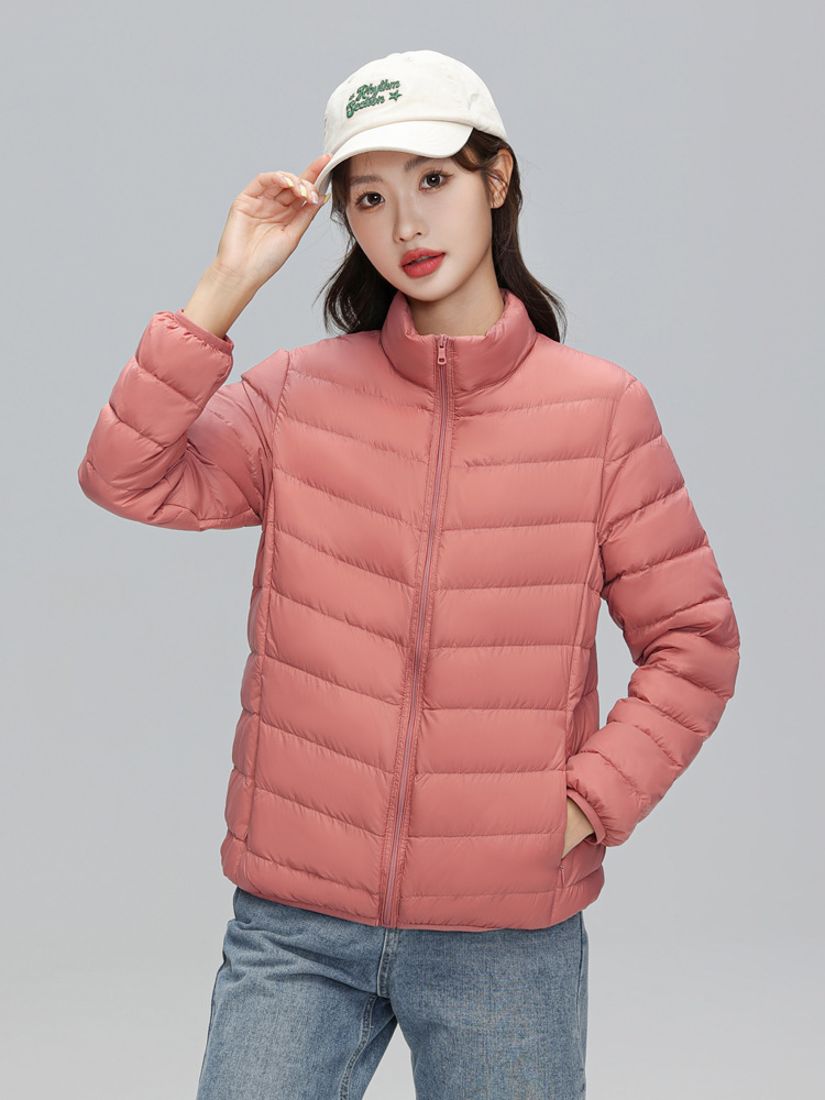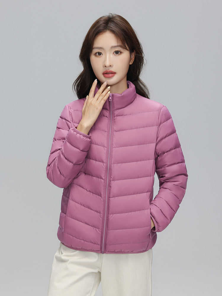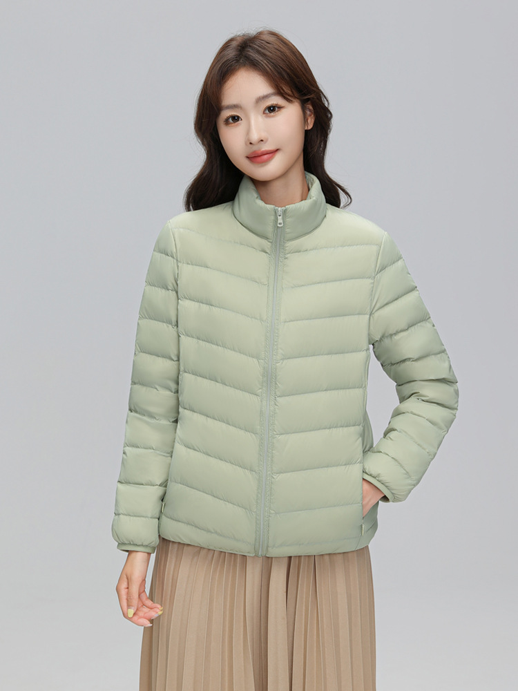 这款是我们新款的90白鸭绒的轻薄型女士羽绒服,