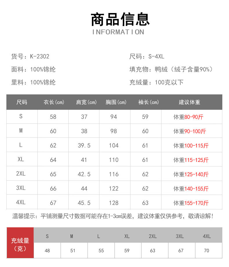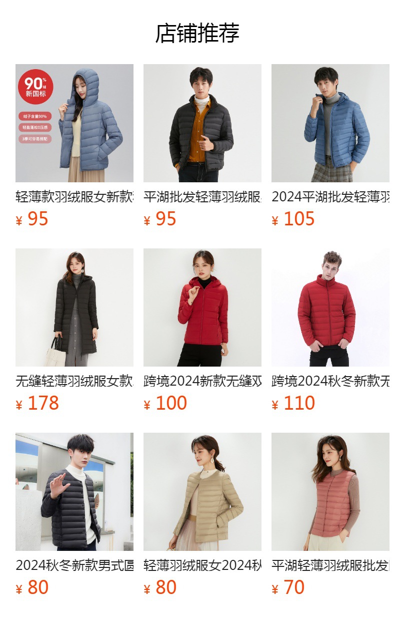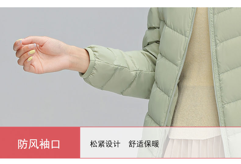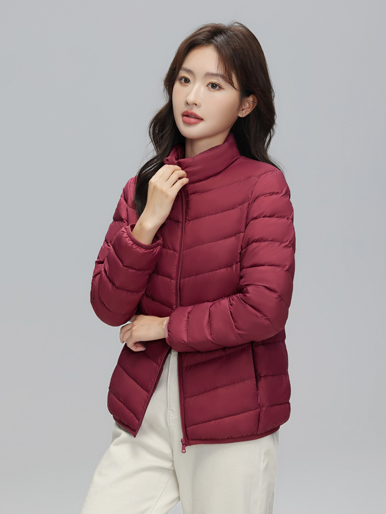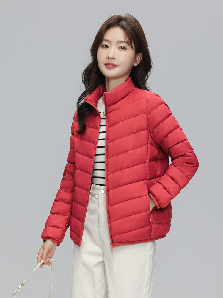 这款是我们新款的90白鸭绒的轻薄型女士羽绒服,