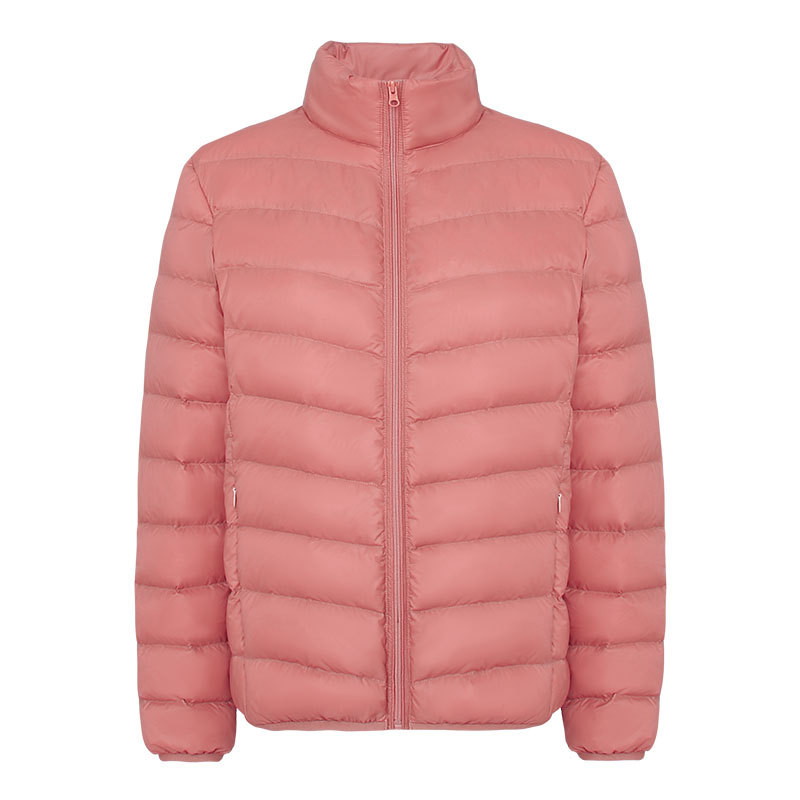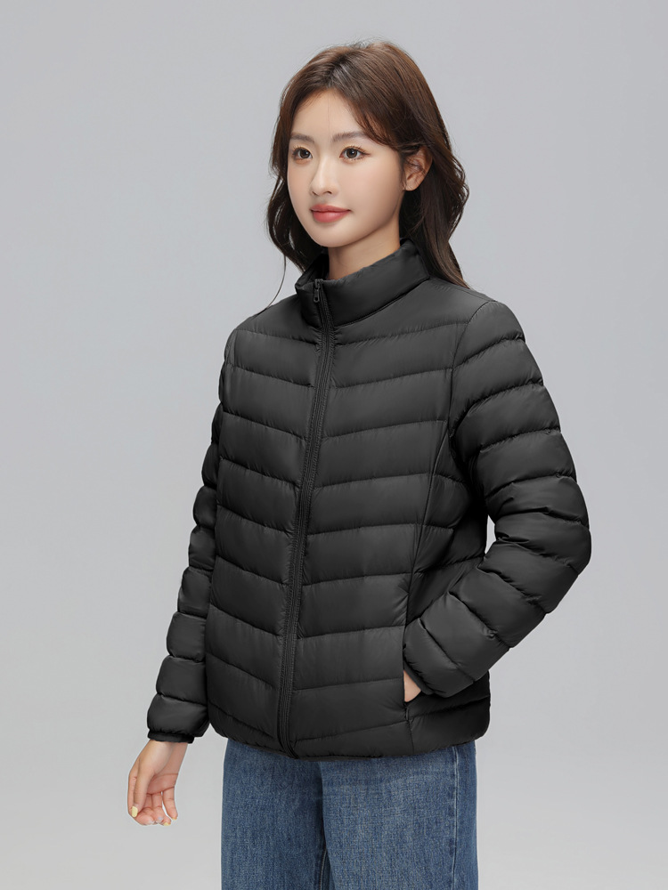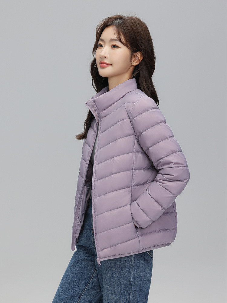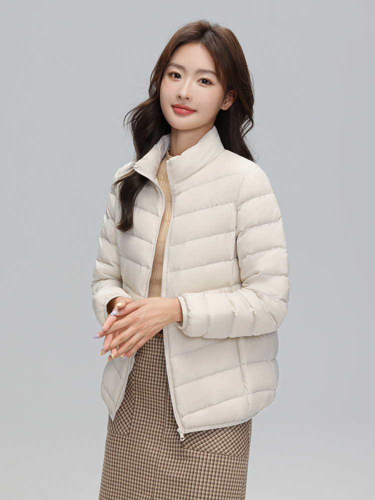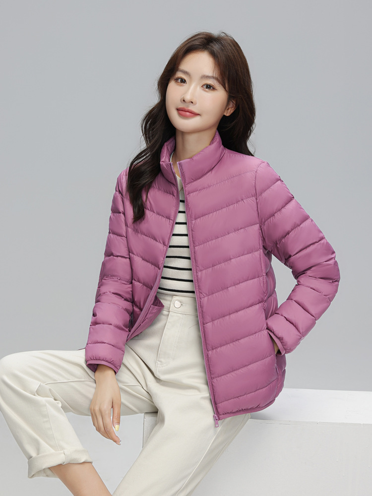 여성을위한 국경 간 얇은 다운 재킷 가을, 겨울 새로운 캐주얼 새로운 국가 표준 90% 벨벳 패션 스탠드 업 칼라 재킷 Dropshipping